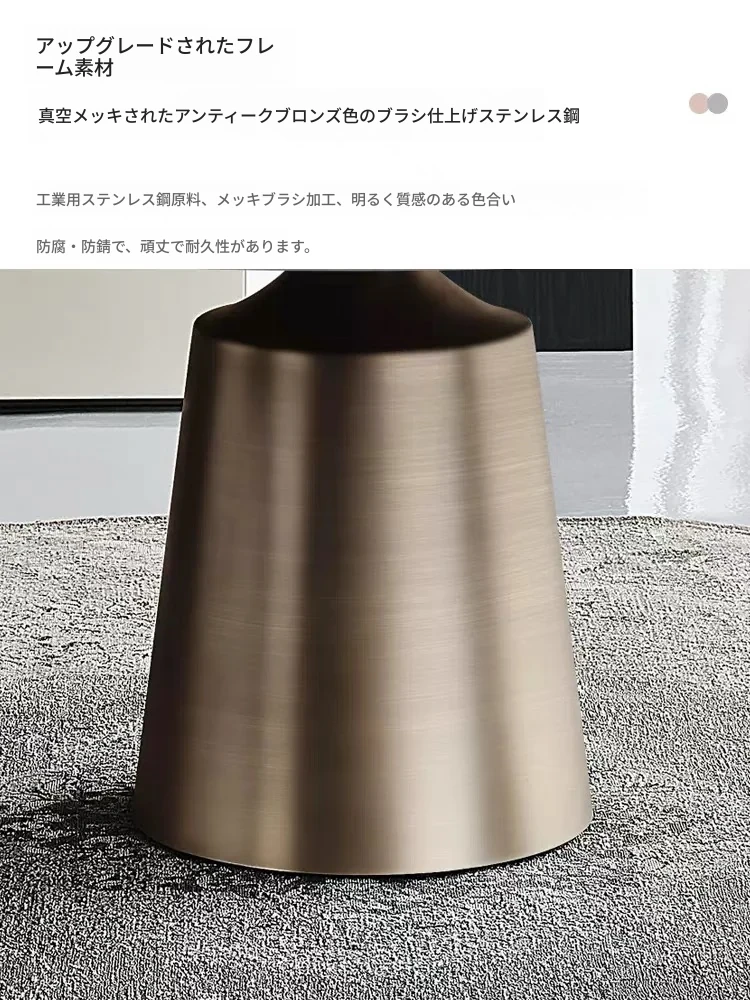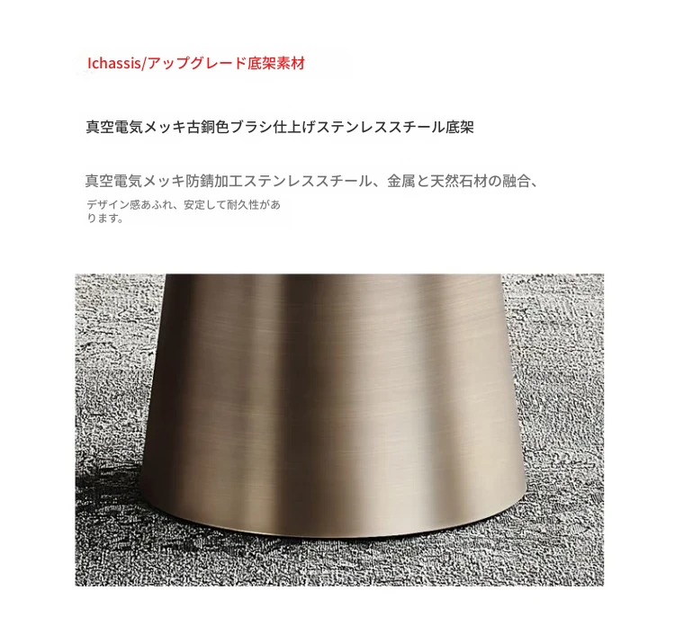 ミニマルデザインの天然石ラウンドダイニングテーブル|ステンレス製の現代的な小型家庭用大理石テーブルで、スタイリッシュな食事空間を演出!