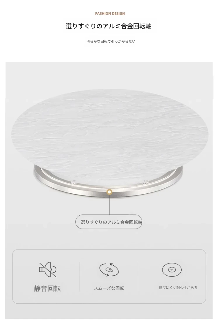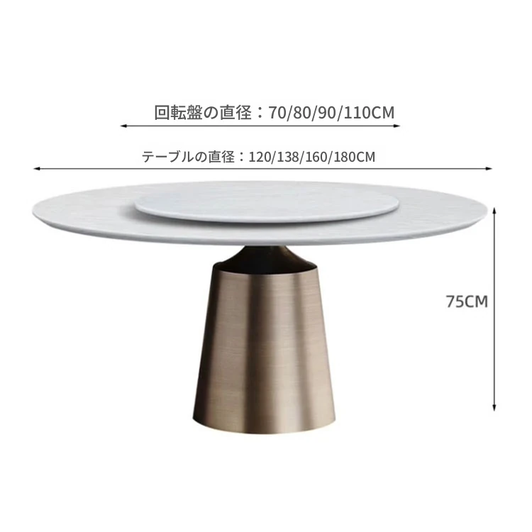 新作!エレガントな大理石の回転式ラウンドダイニングテーブル - モダンでシンプルなヨーロピアンスタイル、家庭用に最適!高級感あふれるデザインで、食事の時間を特別なものに。