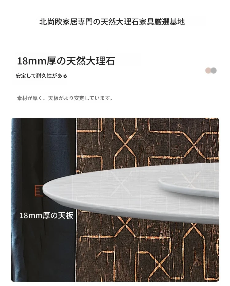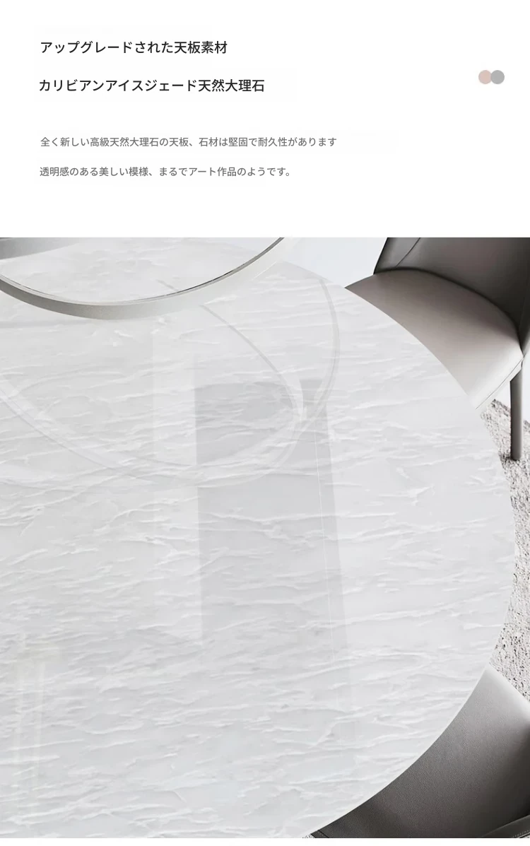 天然大理石の円形ダイニングテーブル|北欧風のシンプルでラグジュアリーなデザイン|高級感あふれるホワイトストーン仕上げ|家庭にぴったりの洗練された食卓を演出!