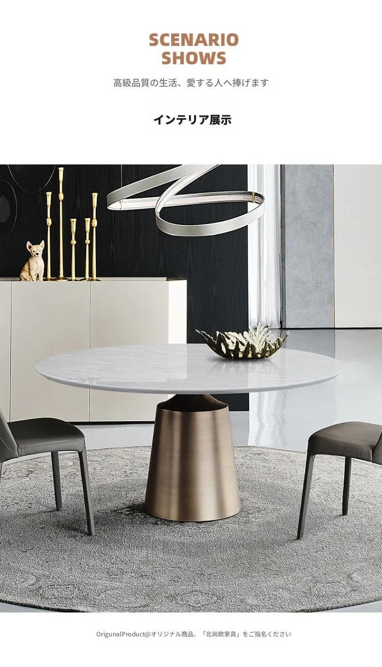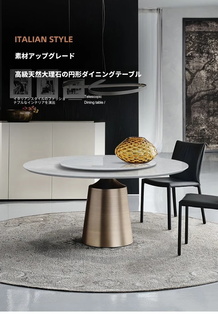 イタリアンミニマルデザイン大理石ダイニングテーブル2023新作!高級感溢れるラグジュアリーな円形テーブルで、広々とした邸宅にぴったり。スタイリッシュなインテリアを演出し、特別なひとときをお届けします。