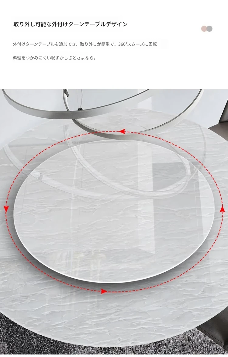 豪華な大理石ダイニングテーブル - ヴィラにぴったり!回転式デザインで、イタリアンモダンな極簡スタイルの天然石製ラウンドテーブルセット。洗練された雰囲気を演出し、特別な食事のひとときを提供します。