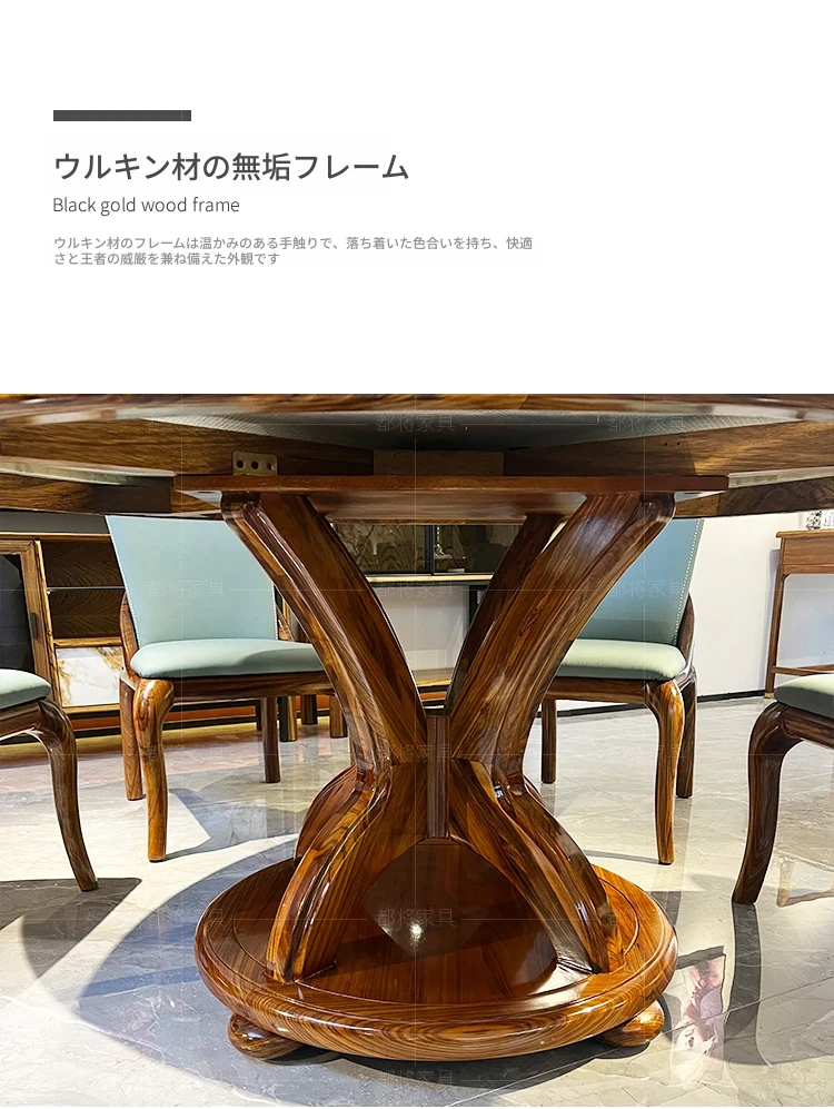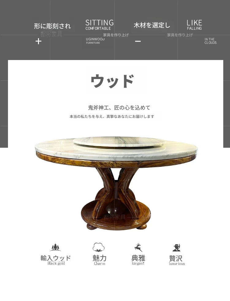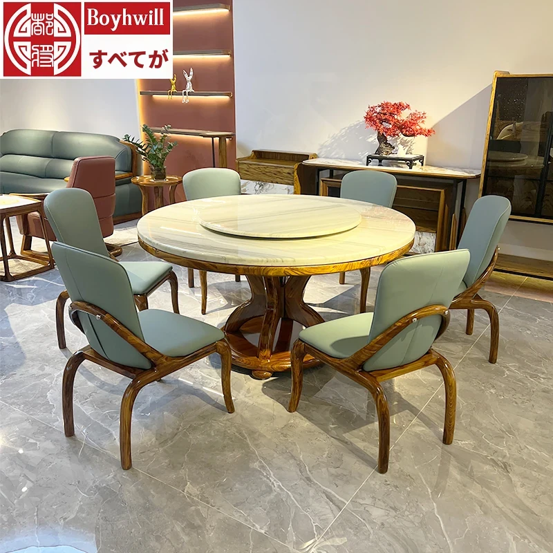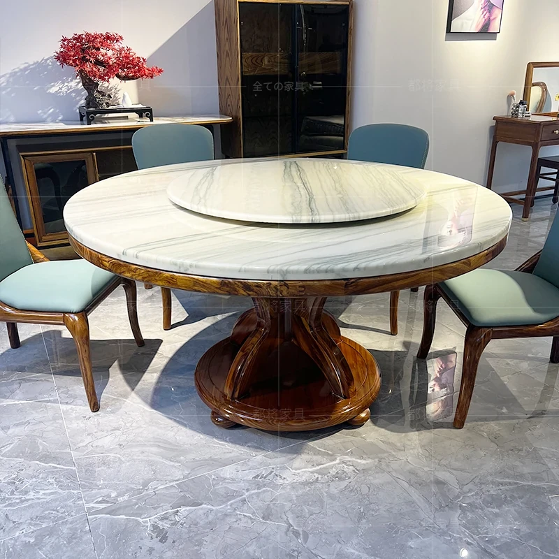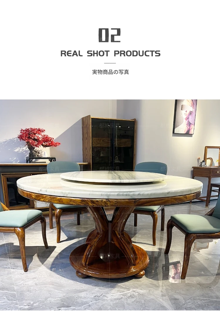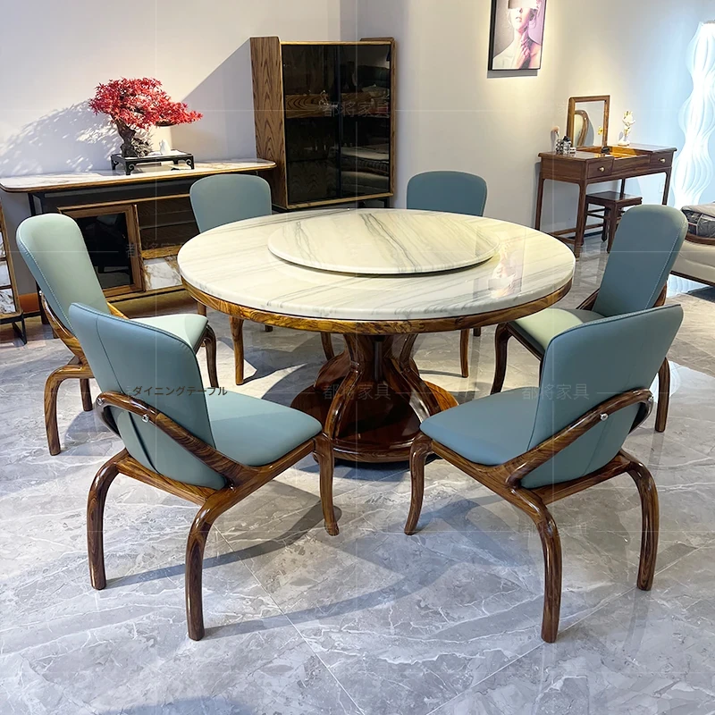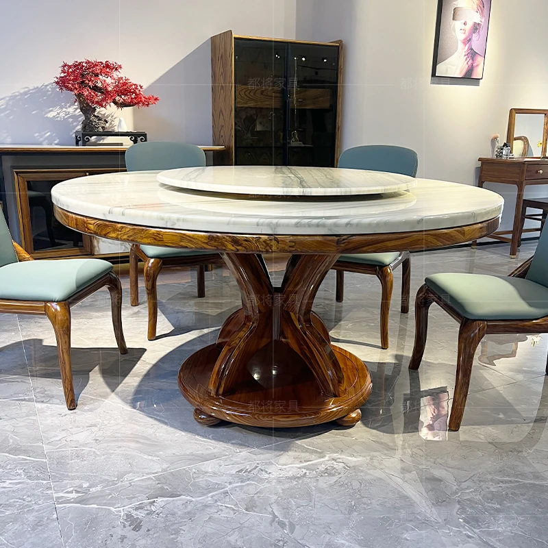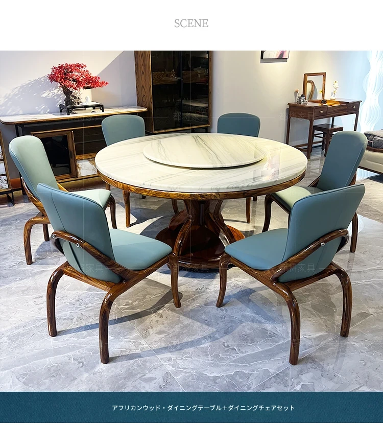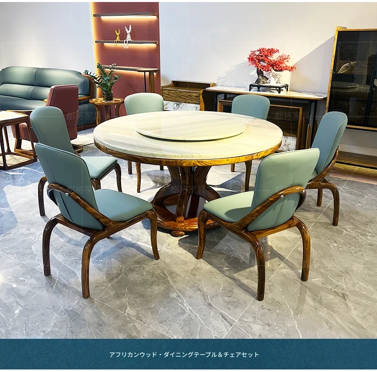 現代新中式軽奢アフリカンウッドと大理石のラウンドダイニングテーブルセット - 美しいデザインと高級感で、あなたのダイニングルームを格上げします!