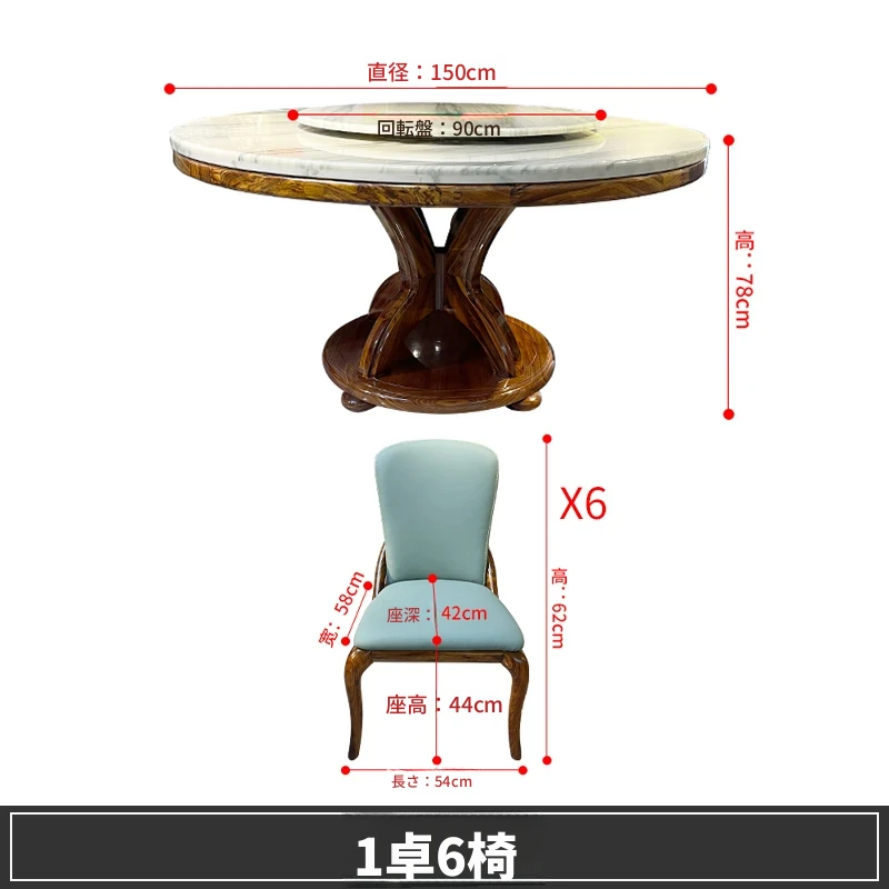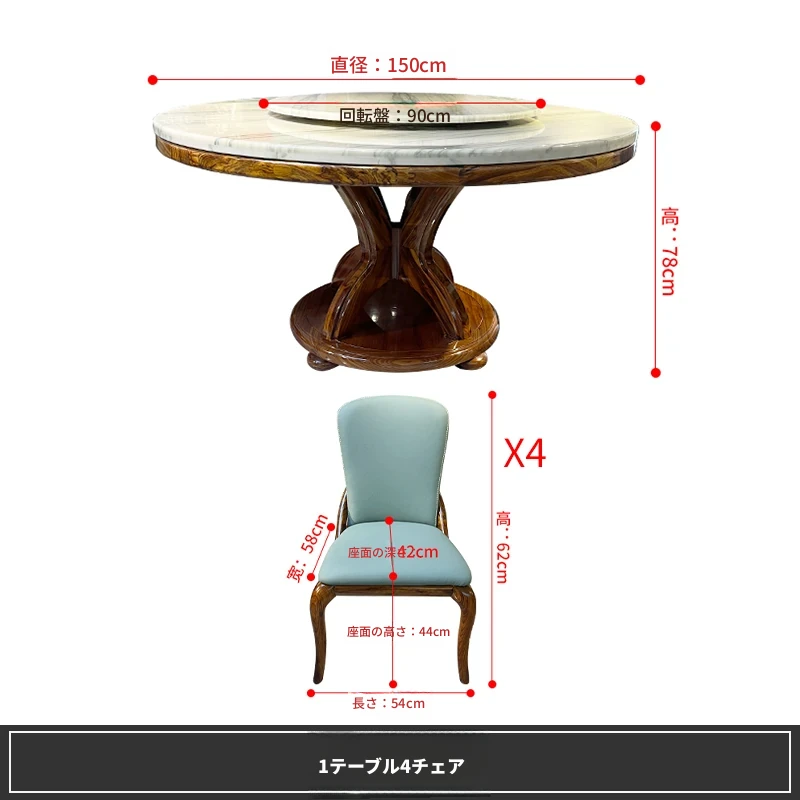 大理石製のエレガントなダイニングテーブル&チェアセット | 高品質な無垢材使用 | 欧風デザインの丸テーブル | 家庭用アメリカンスタイル | 食事を楽しむための完璧なテーブルセット!