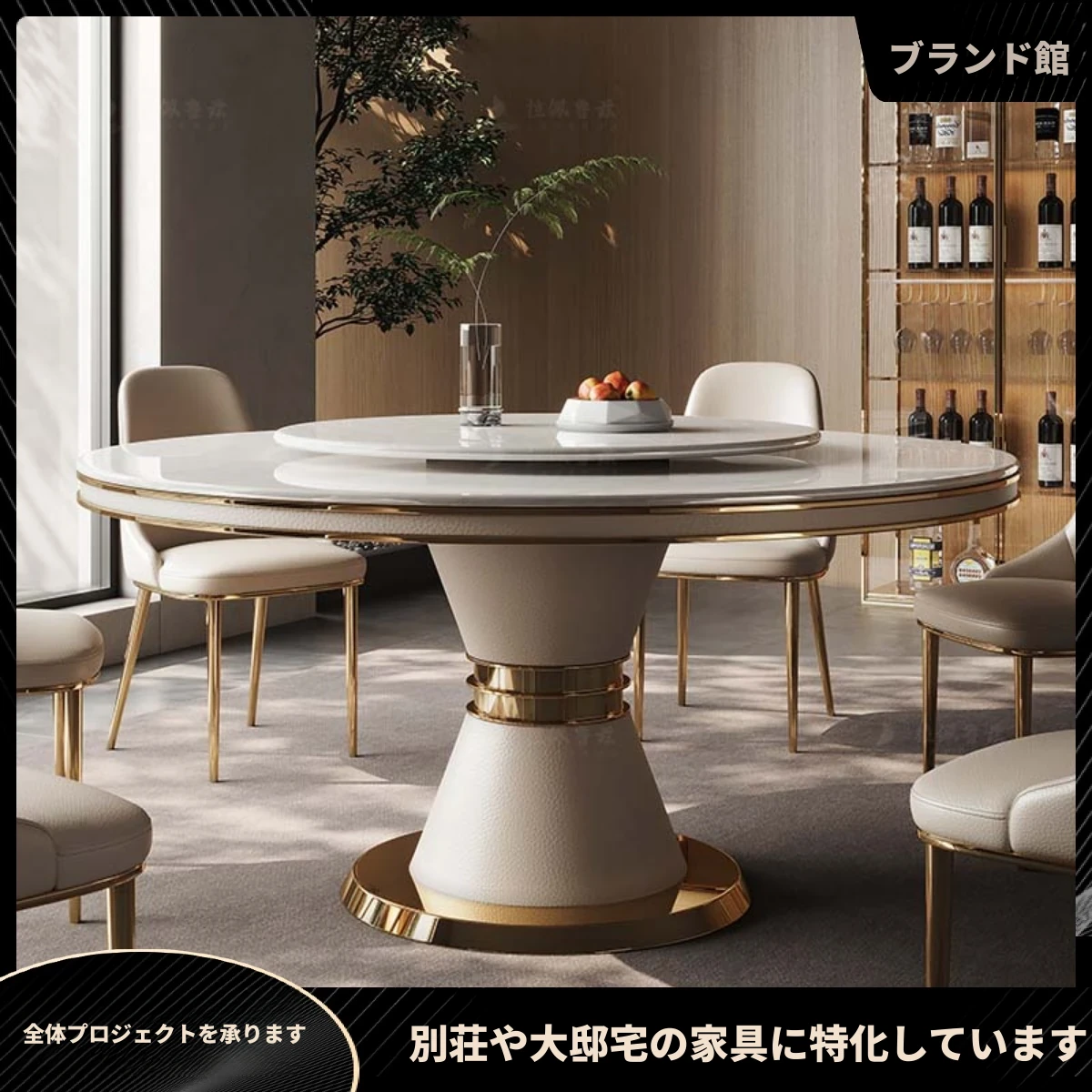 豪華な大理石ダイニングテーブル - ヴィラにぴったり!回転式デザインで、イタリアンモダンな極簡スタイルの天然石製ラウンドテーブルセット。洗練された雰囲気を演出し、特別な食事のひとときを提供します。
