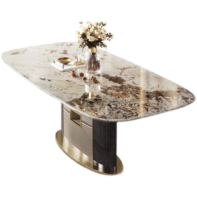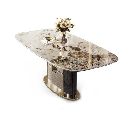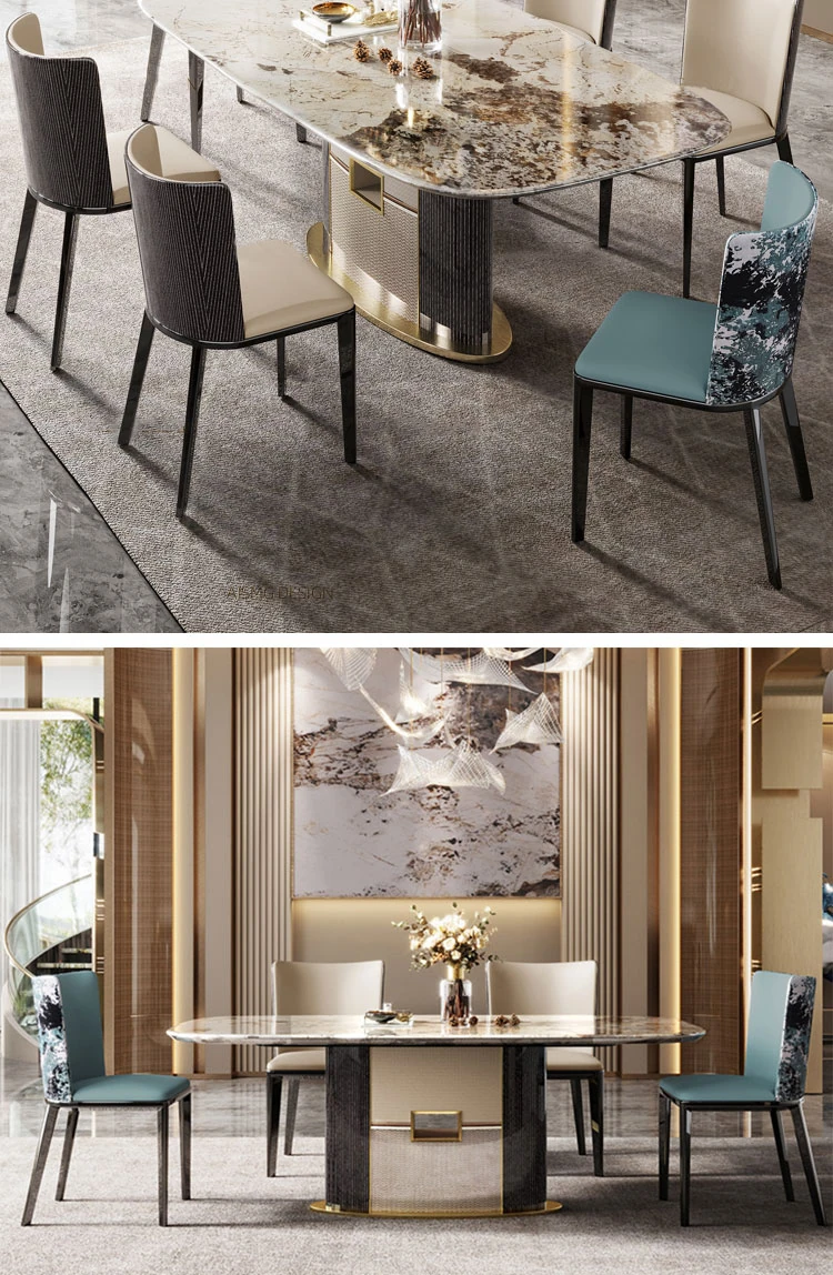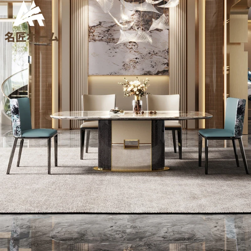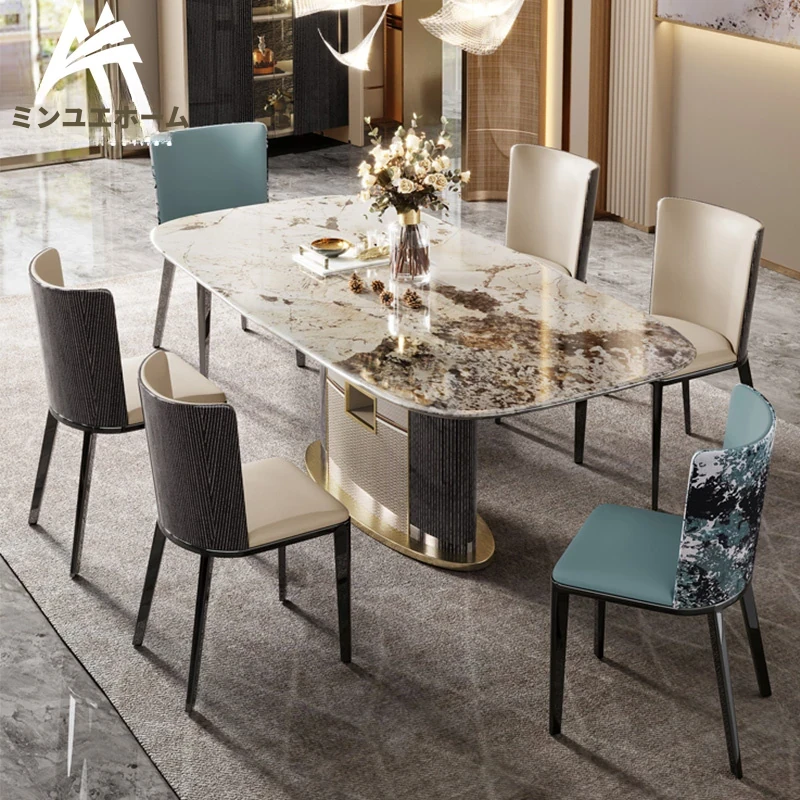 2024年新作!イタリアンラグジュアリーの全室インテリア提案、広々とした大邸宅にぴったりな天然サファイア大理石のダイニングテーブル。洗練されたデザインで、特別な食卓を演出します!