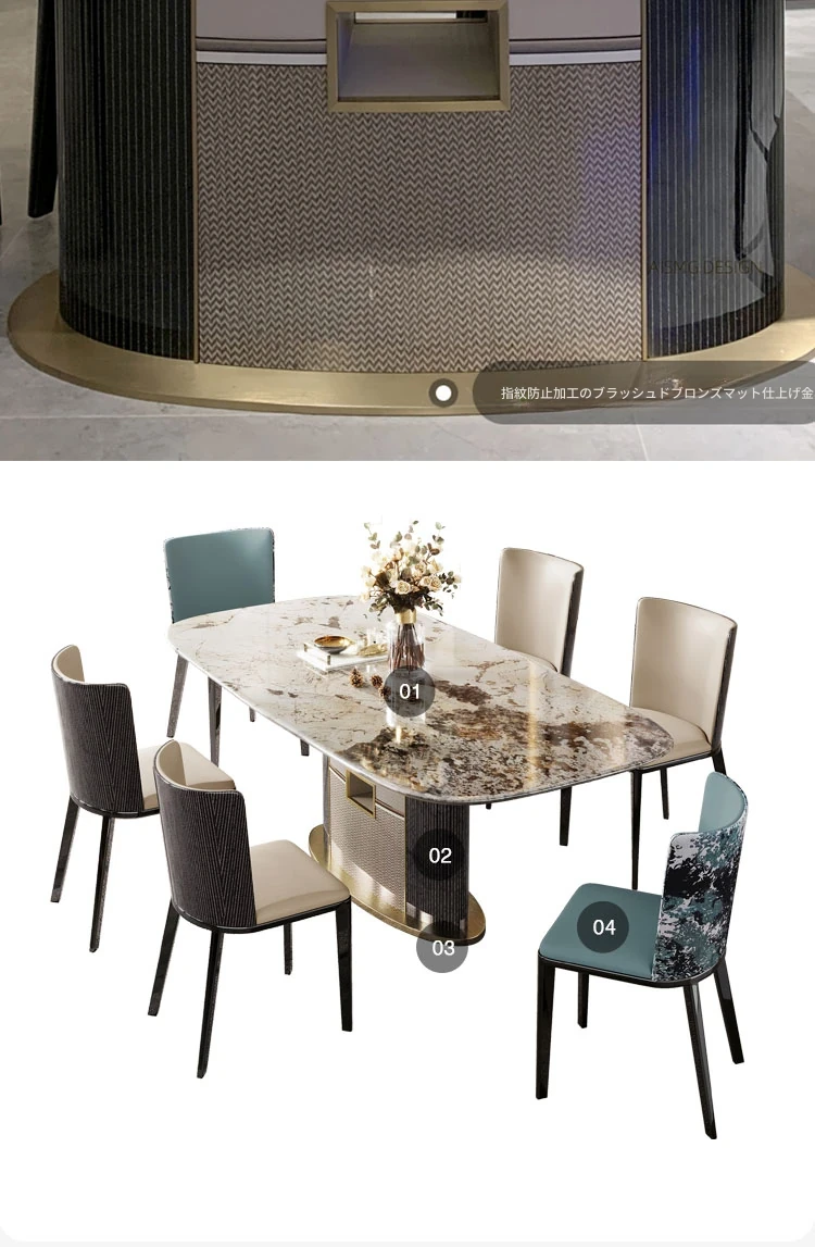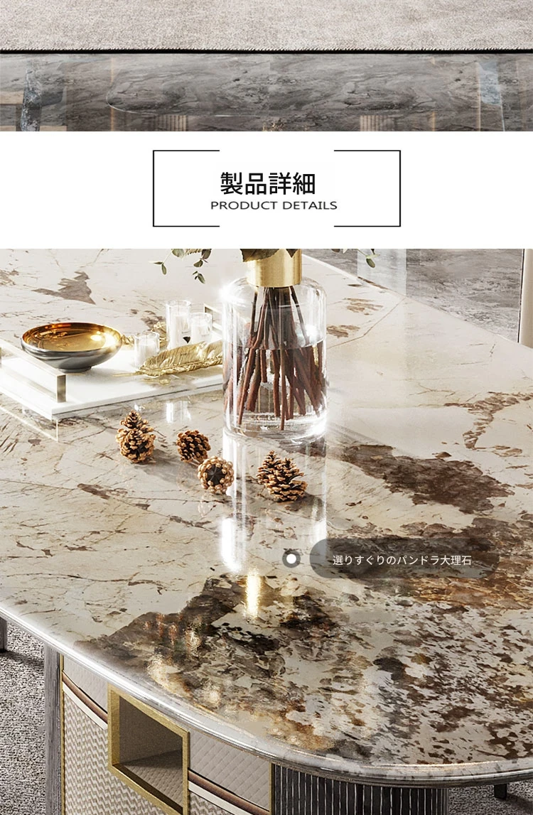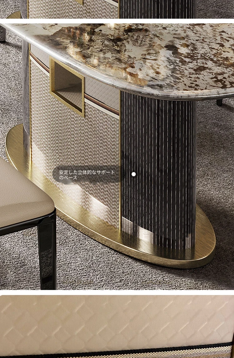 アンティーク風の高級石製ダイニングテーブル インポート・パンドラの天然大理石使用 イタリアンミニマルスタイルのテーブル&チェアセットで、洗練された食卓を演出!