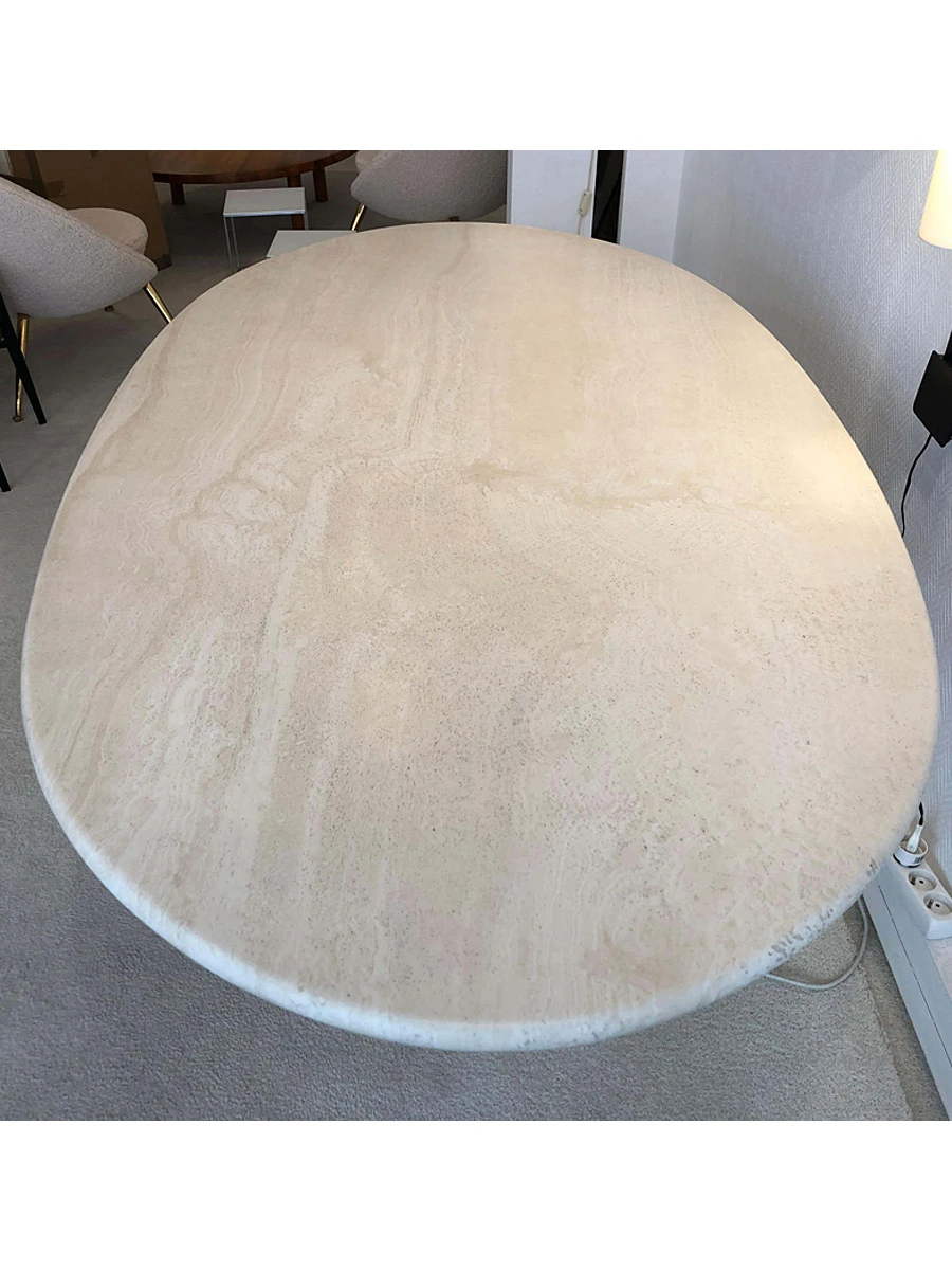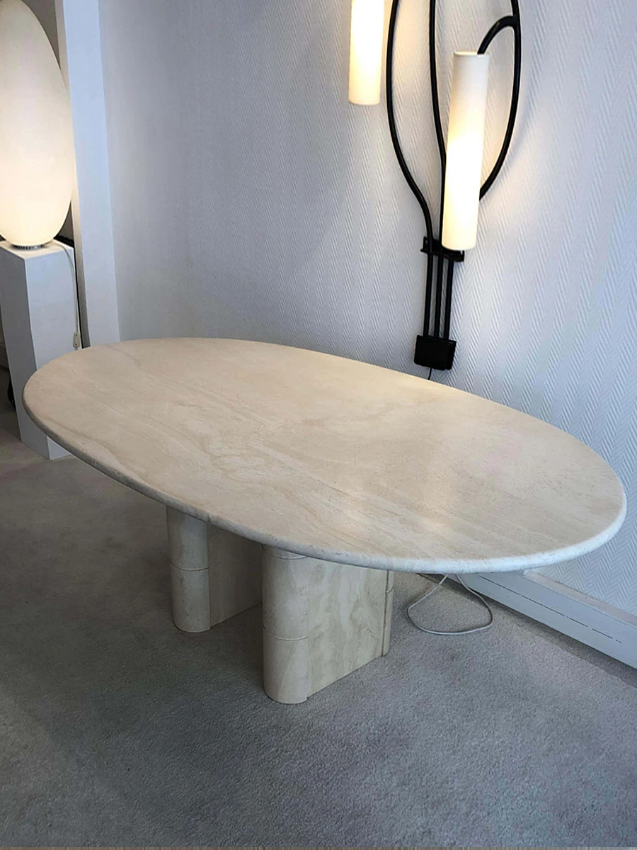 イタリアンナチュラルローマ洞石ダイニングテーブル - モダンミニマルデザインのサンプルルーム用別荘レストラン向けエレガントな楕円形ロングテーブルで、優雅な食事体験を提供します!