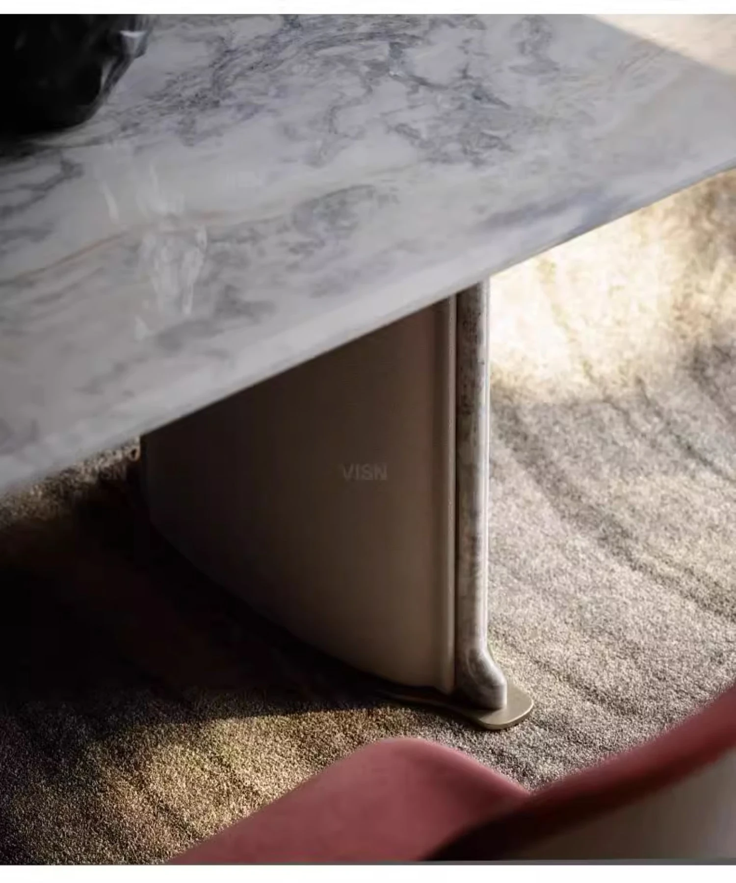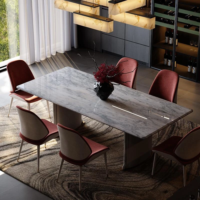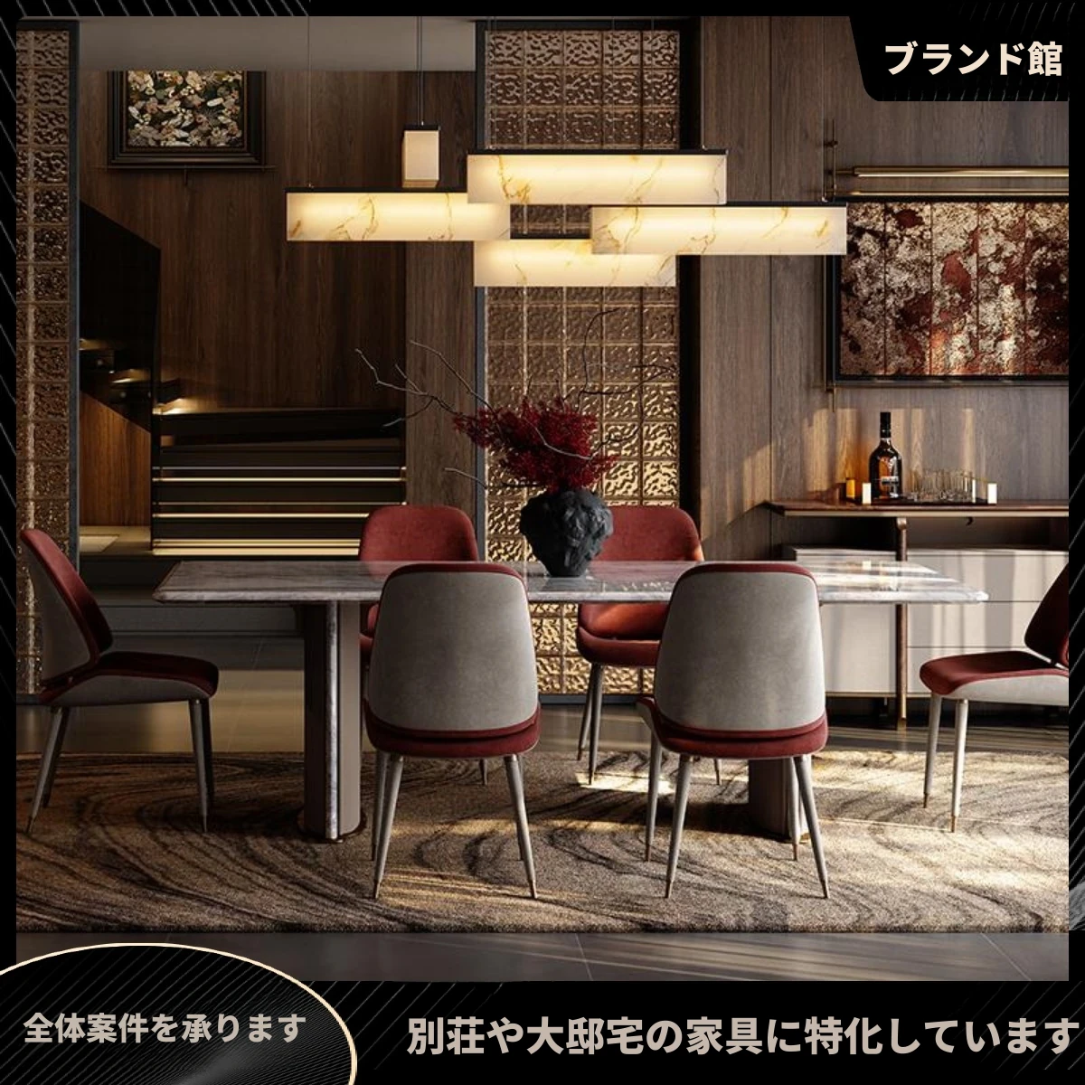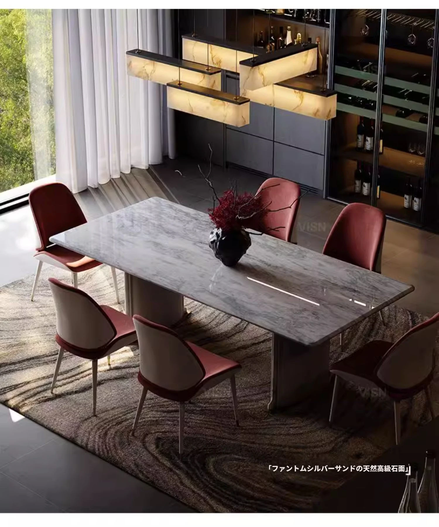 現代的なラグジュアリー石製長方形ダイニングテーブル|別荘や豪邸にぴったりな全屋ダイニングシリーズ|洗練された軽やかなデザインで、特別なひとときを演出します。