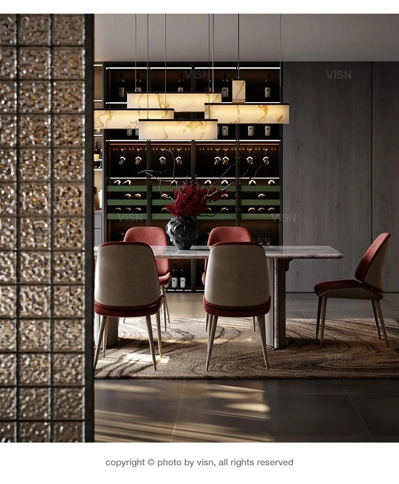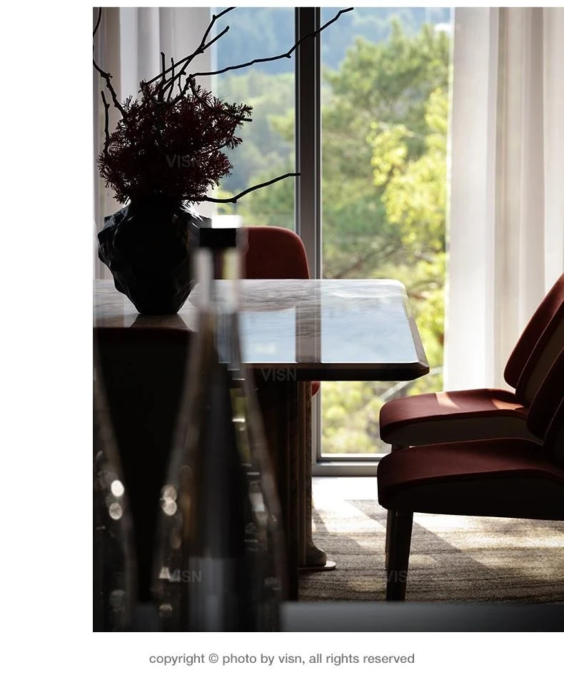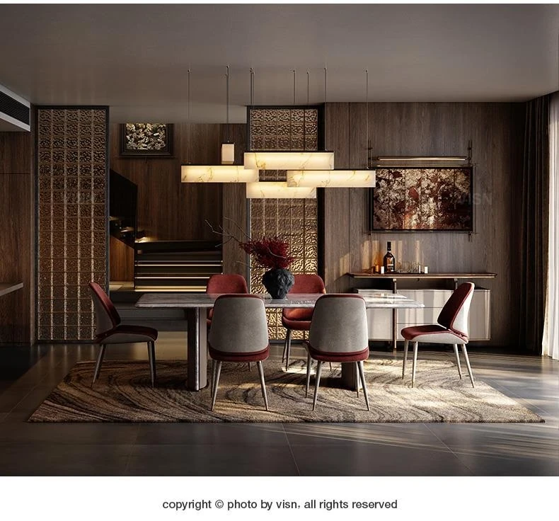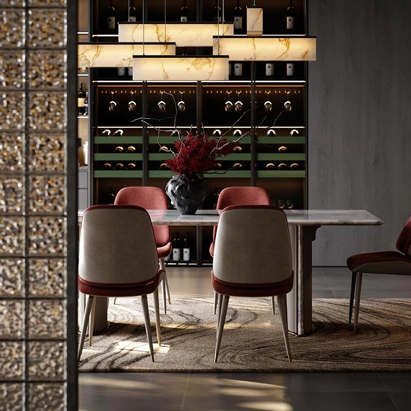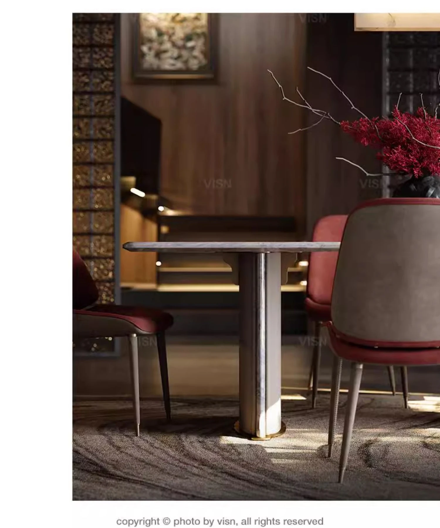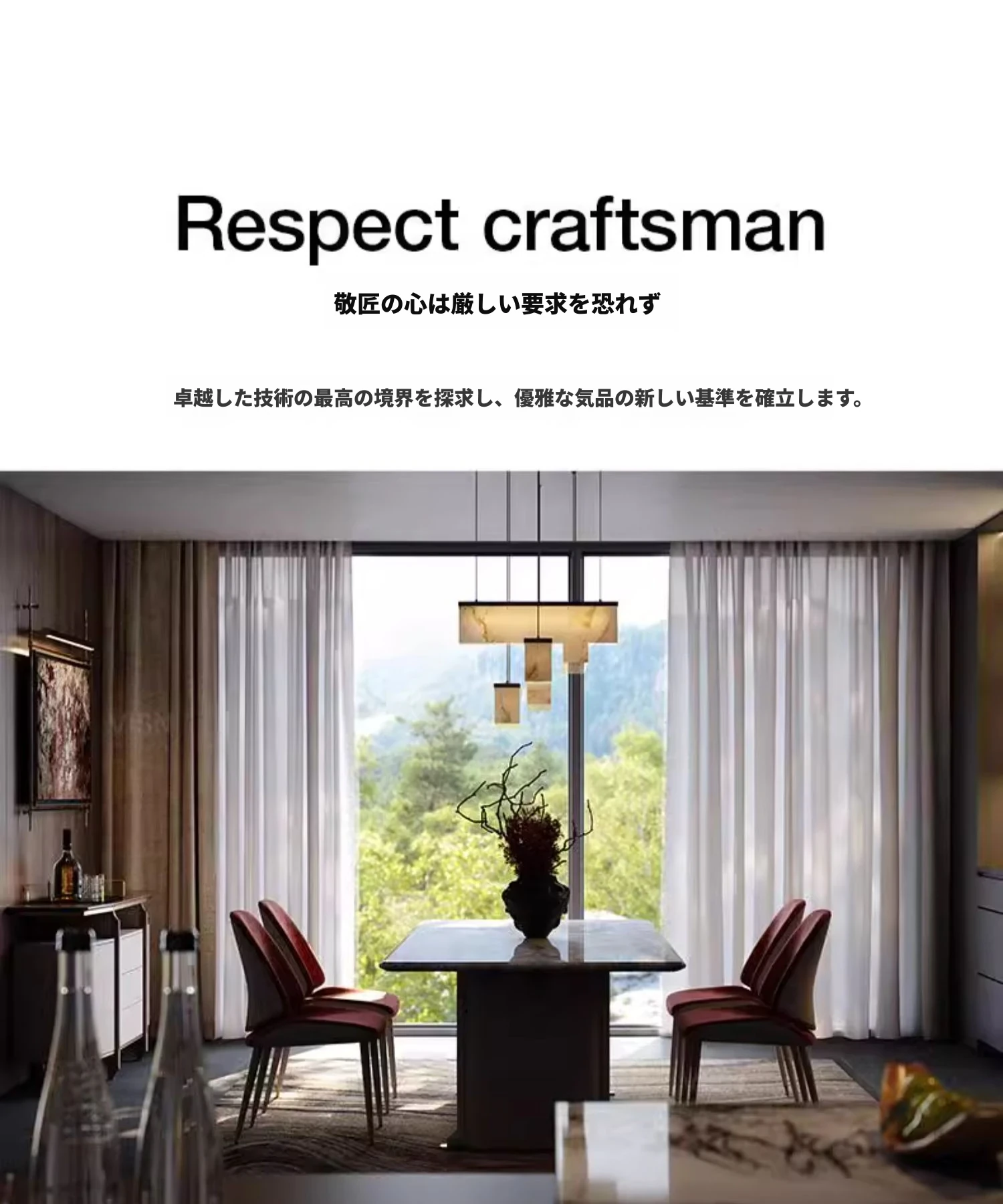 現代的なラグジュアリー石製長方形ダイニングテーブル|別荘や豪邸にぴったりな全屋ダイニングシリーズ|洗練された軽やかなデザインで、特別なひとときを演出します。