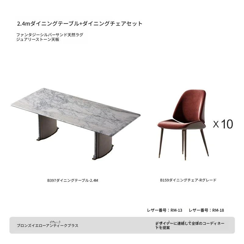 ダイニングテーブル2.4M(ファントムシルバーサンドラグジュアリー石面)+B159ダイニングチェア*10[R級]