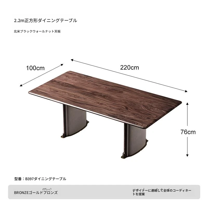 ダイニングテーブル2.2M(北米ブラックウォルナット面)
