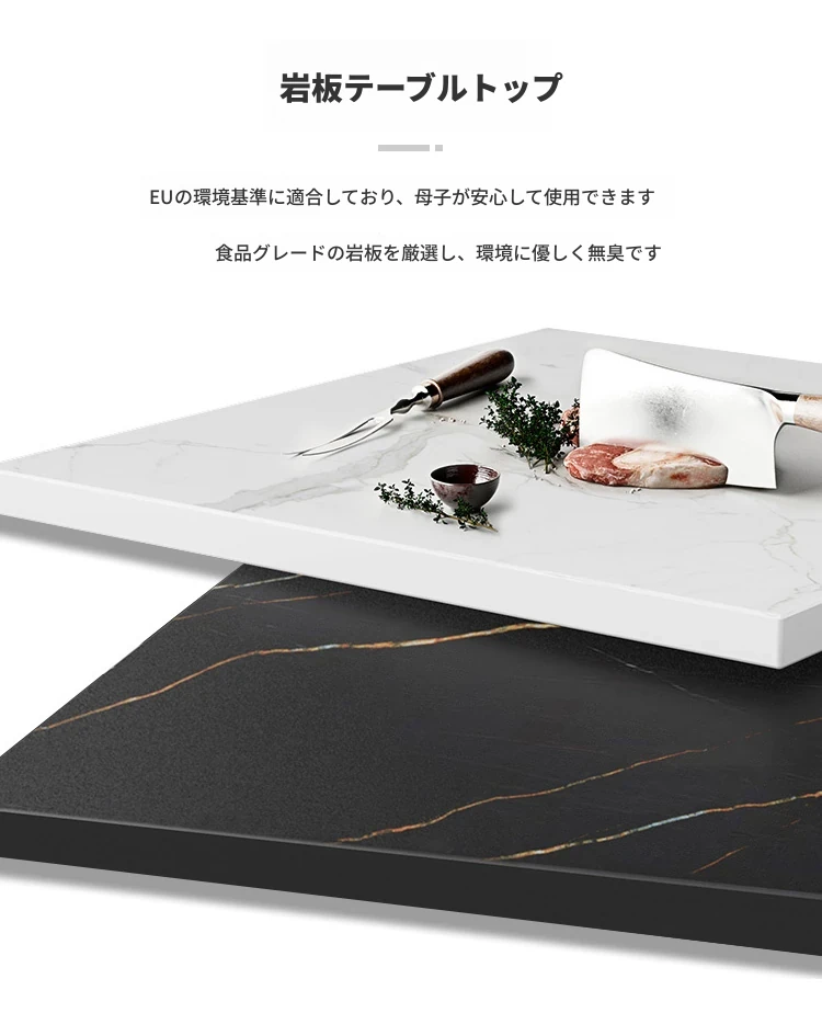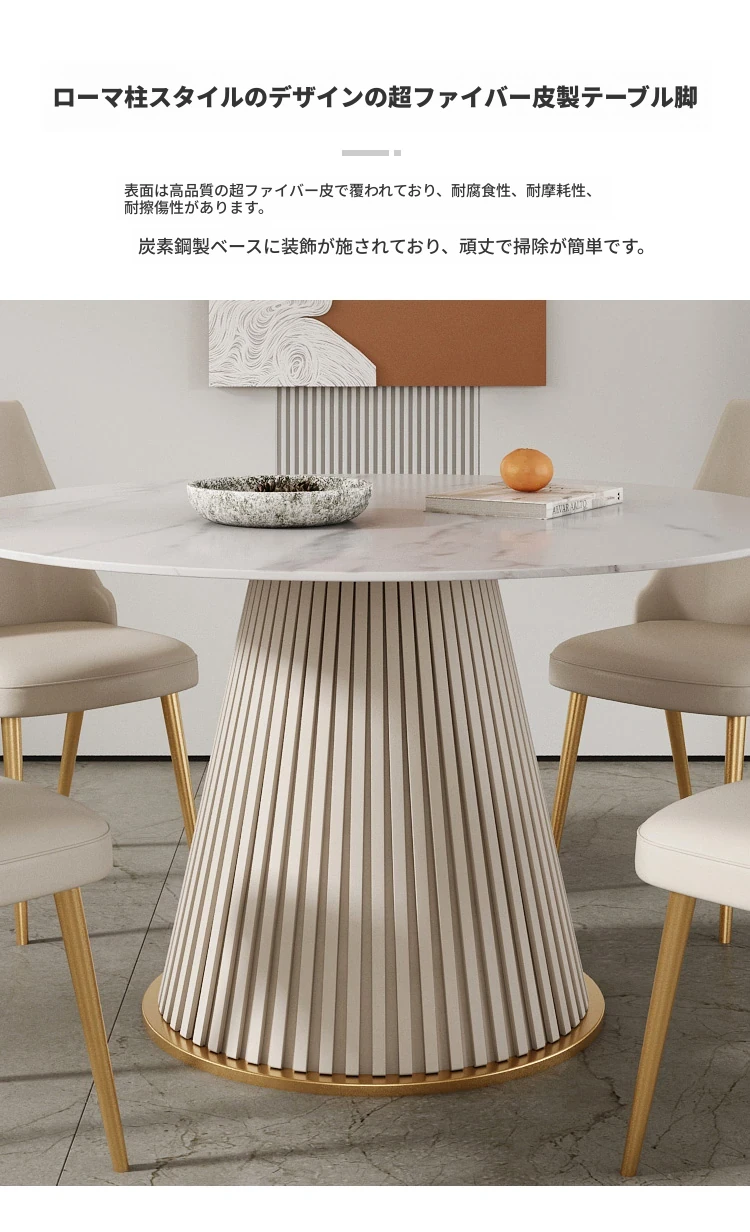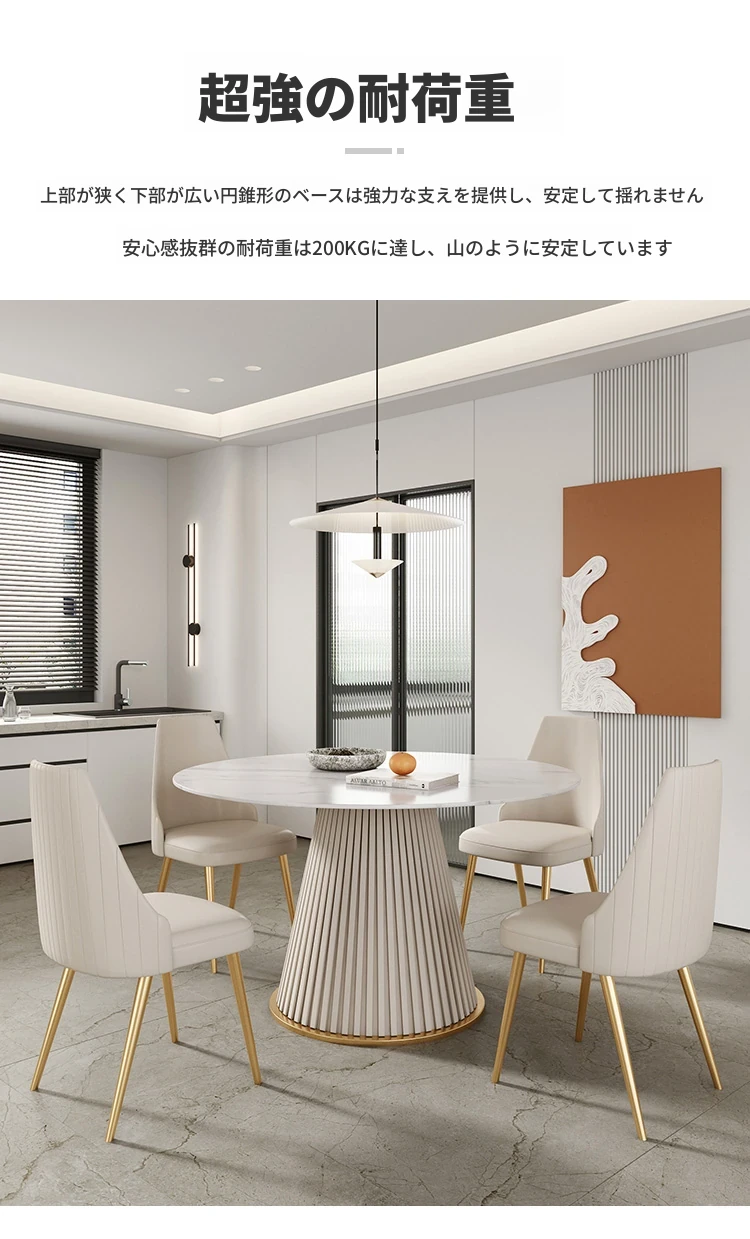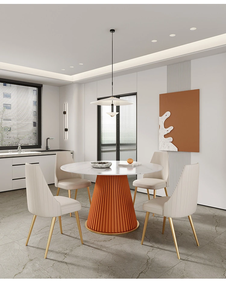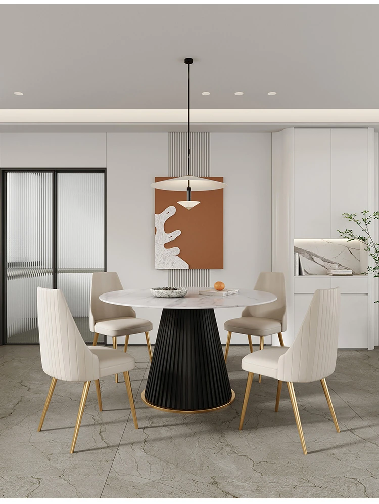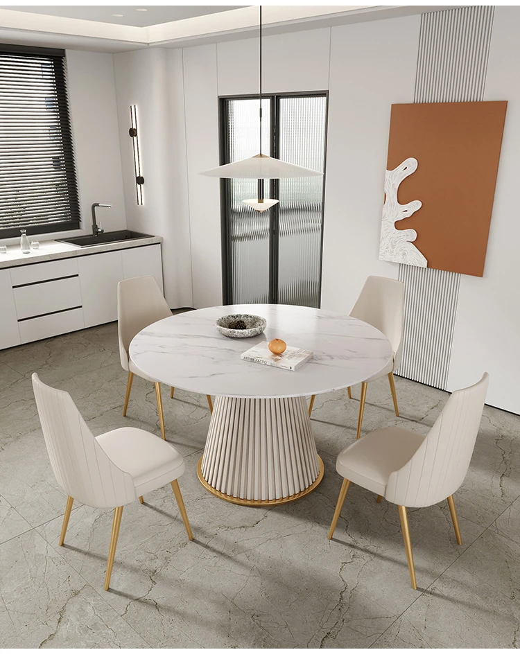 モダンでシンプルなラグジュアリー、新作グロッシーな石板製の丸型ダイニングテーブル。小スペースに最適な家庭用の石板テーブルと椅子の組み合わせ。おしゃれで機能的な食事空間を演出します!