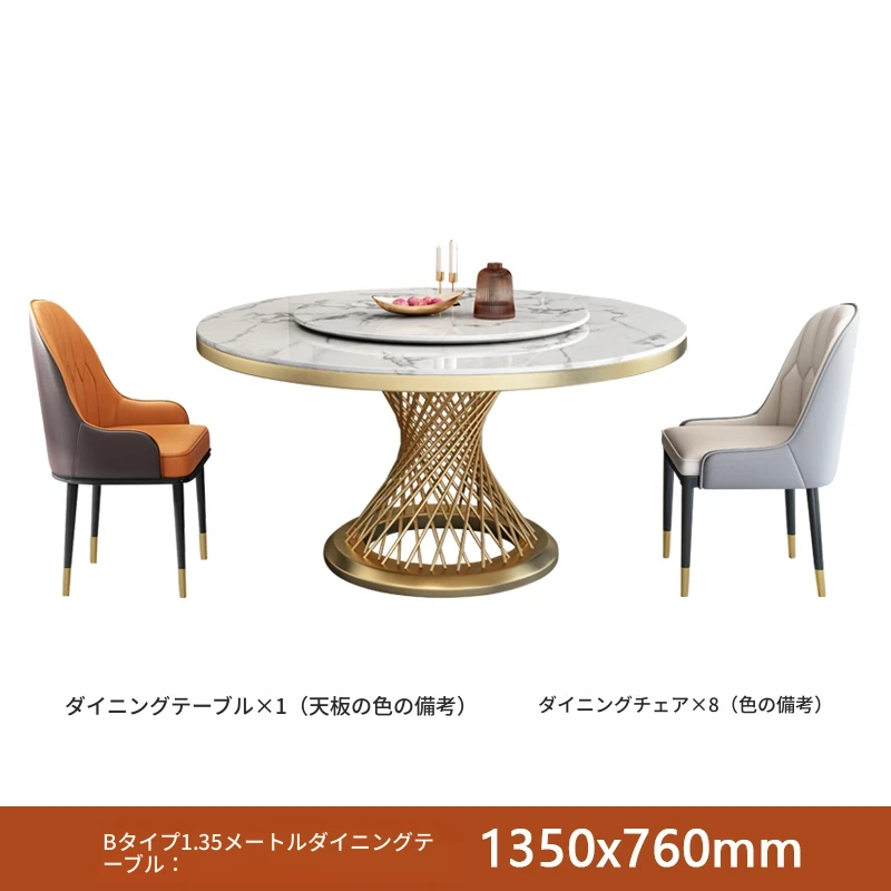 1.35メートルのダイニングテーブル+ダイニングチェア*8【大理石/岩板】