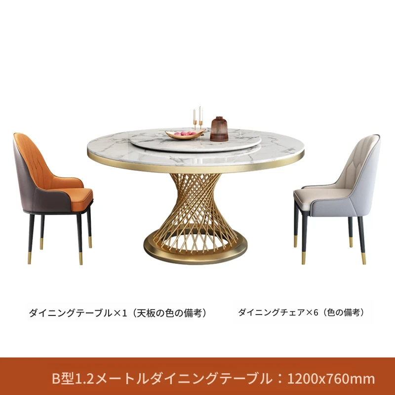 1.2メートルのダイニングテーブル+ダイニングチェア*6【大理石/岩板】