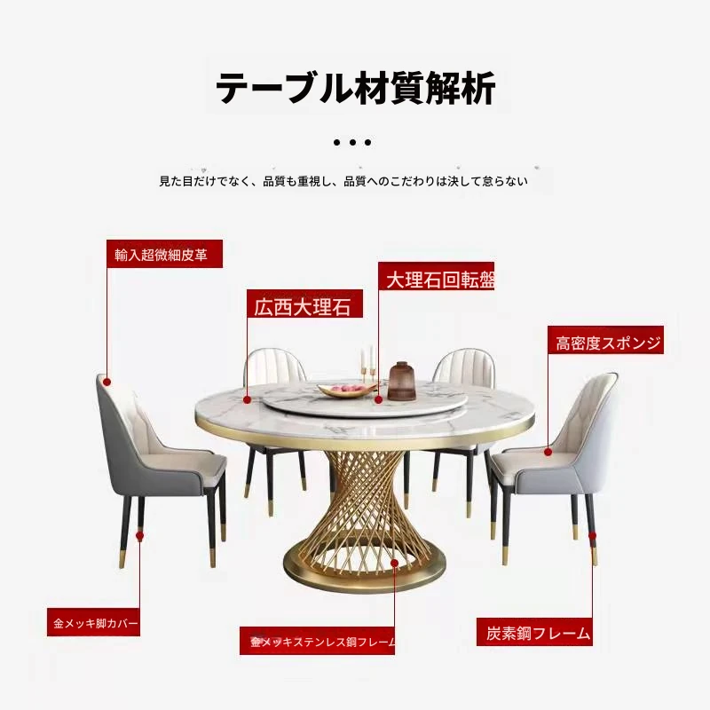 1.35メートルのダイニングテーブル+ダイニングチェア*6【大理石/岩板】