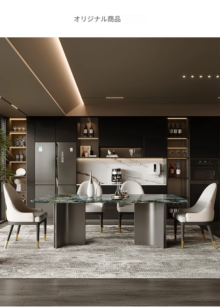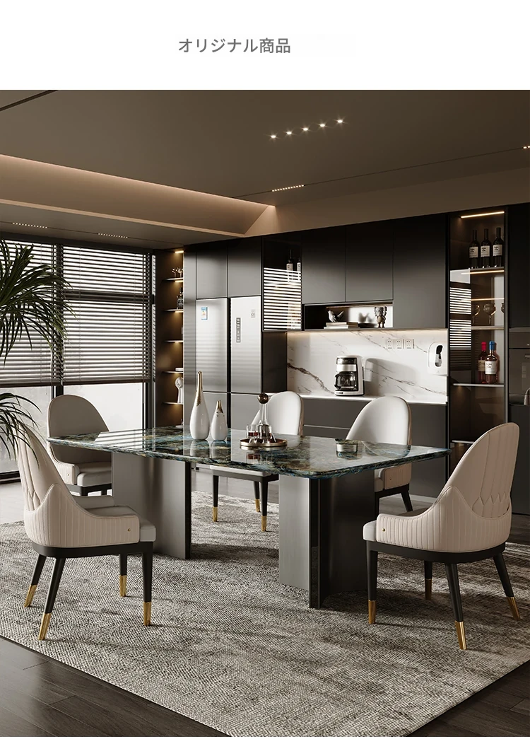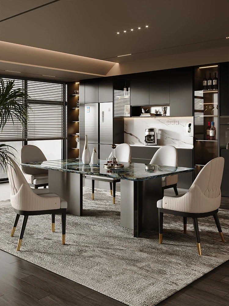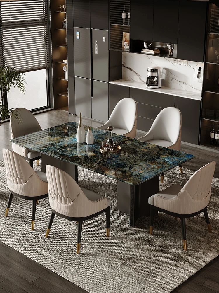 現代的なシンプルデザインの高級ミクロクリスタルストーンダイニングテーブルセット - 小型住宅に最適なエレガントな長方形テーブルとチェアの組み合わせ!あなたの食卓を格上げする一品です。