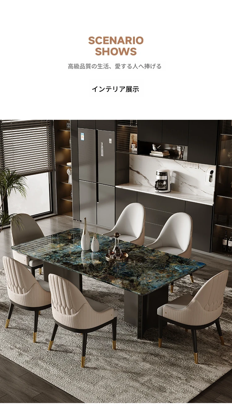 1.8メートルのラグジュアリー石テーブル+6椅子