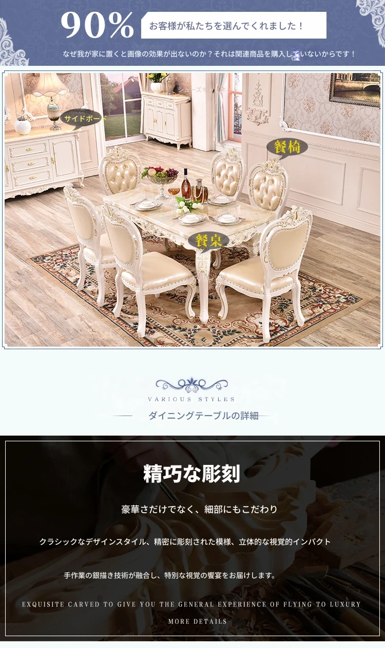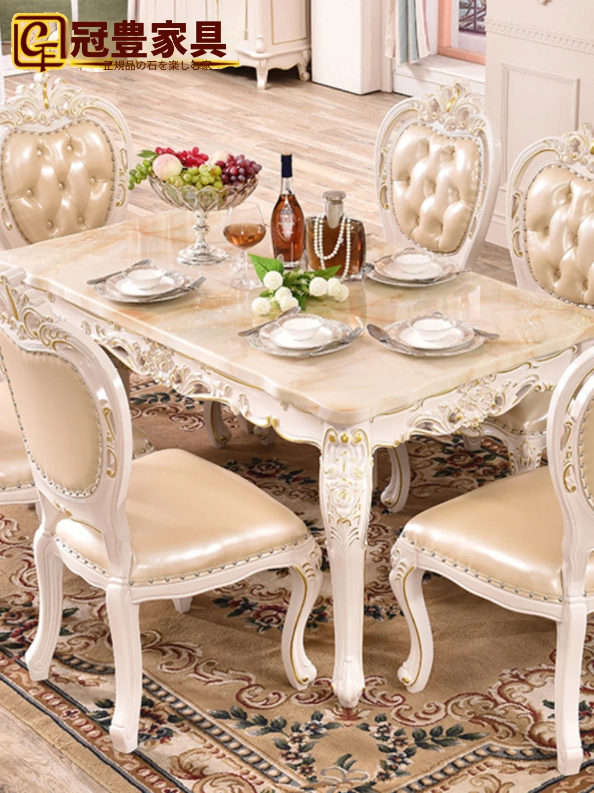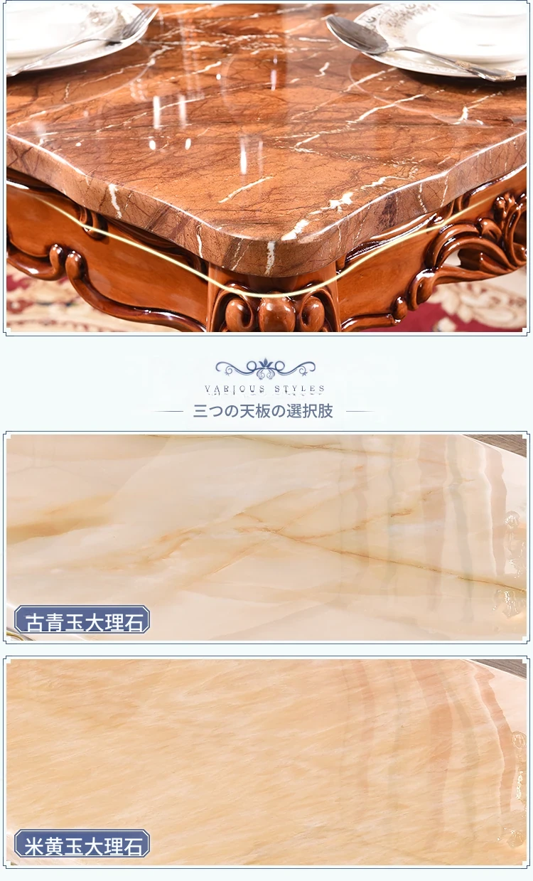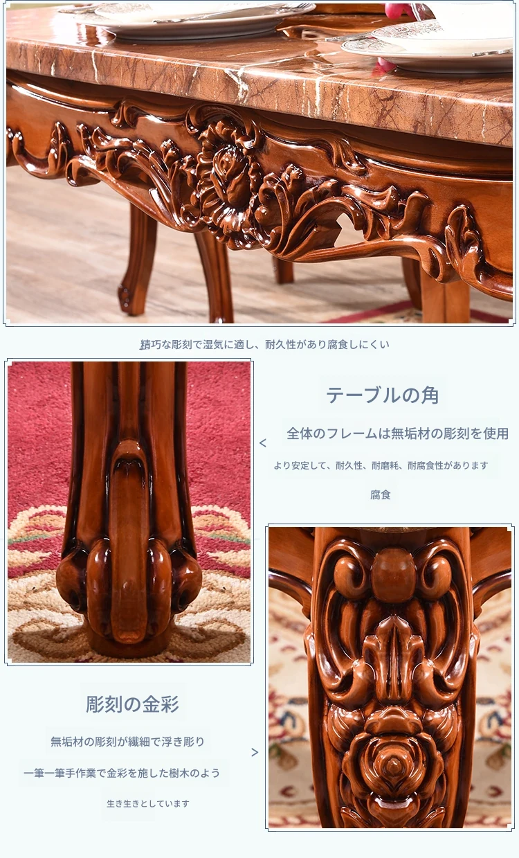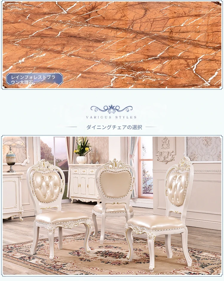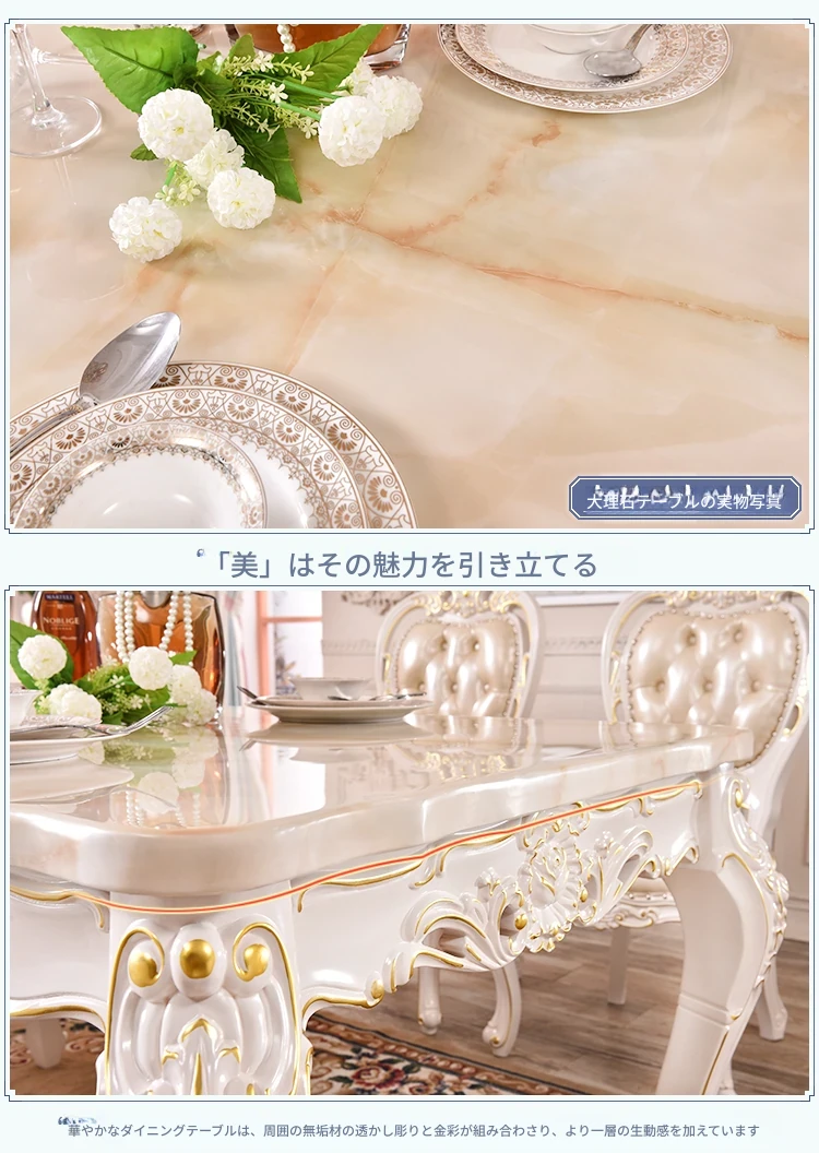 天然大理石ダイニングテーブルセット|モダンなシンプルデザインの正方形テーブル|小さなお部屋に最適!6人用、回転台なしで使いやすさ抜群!