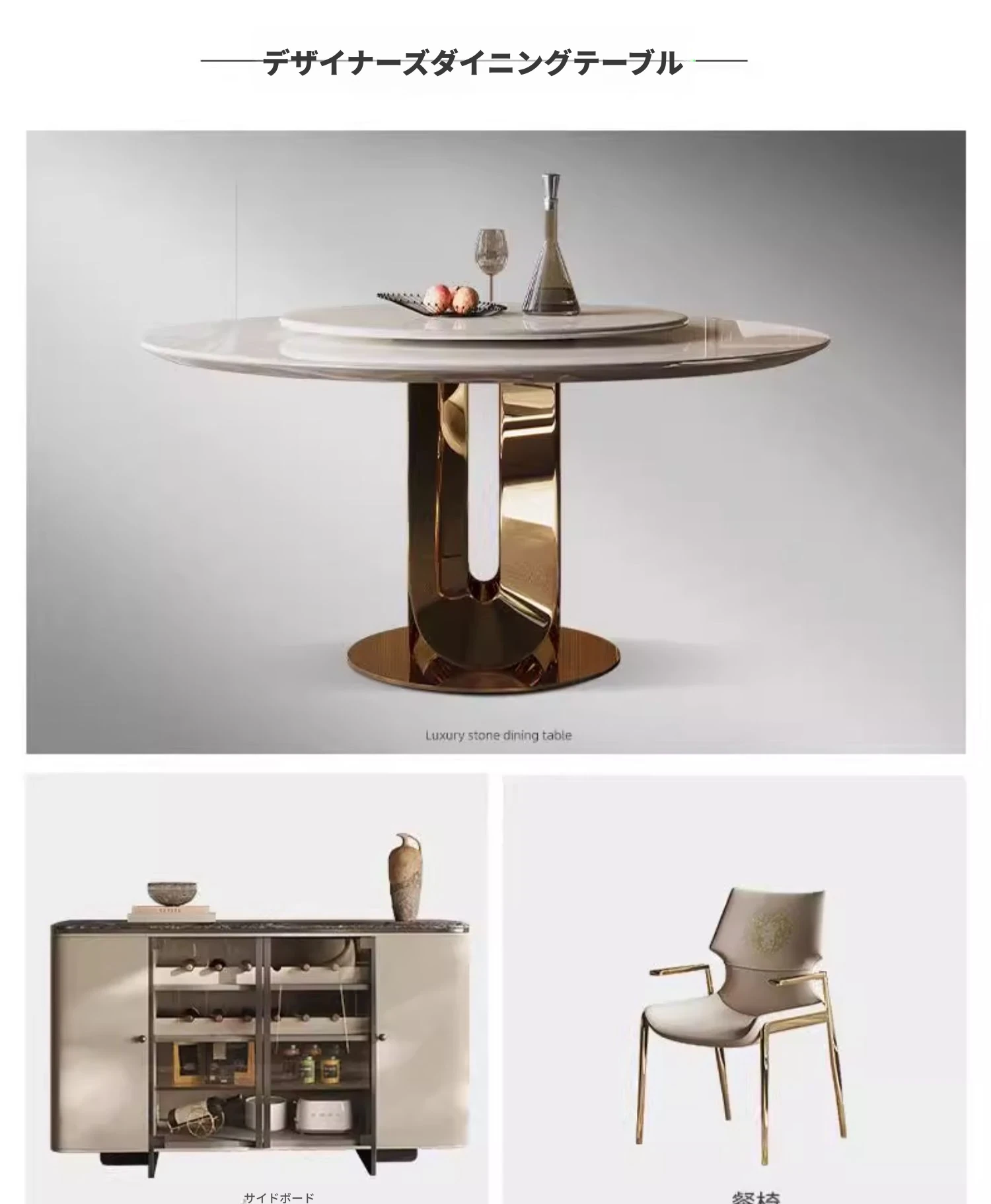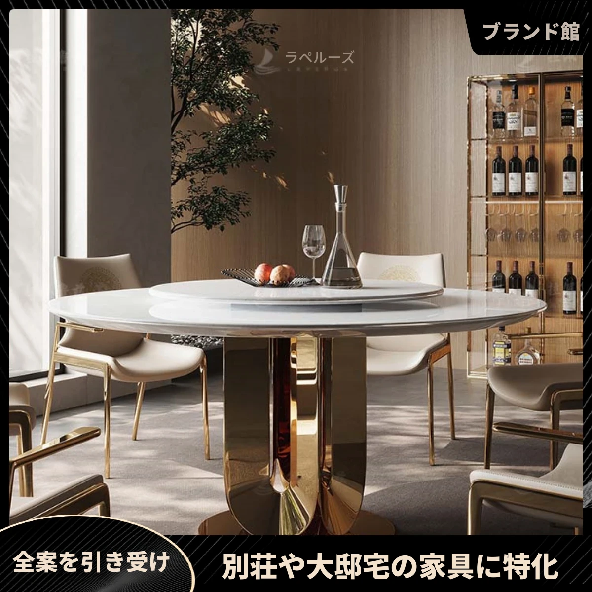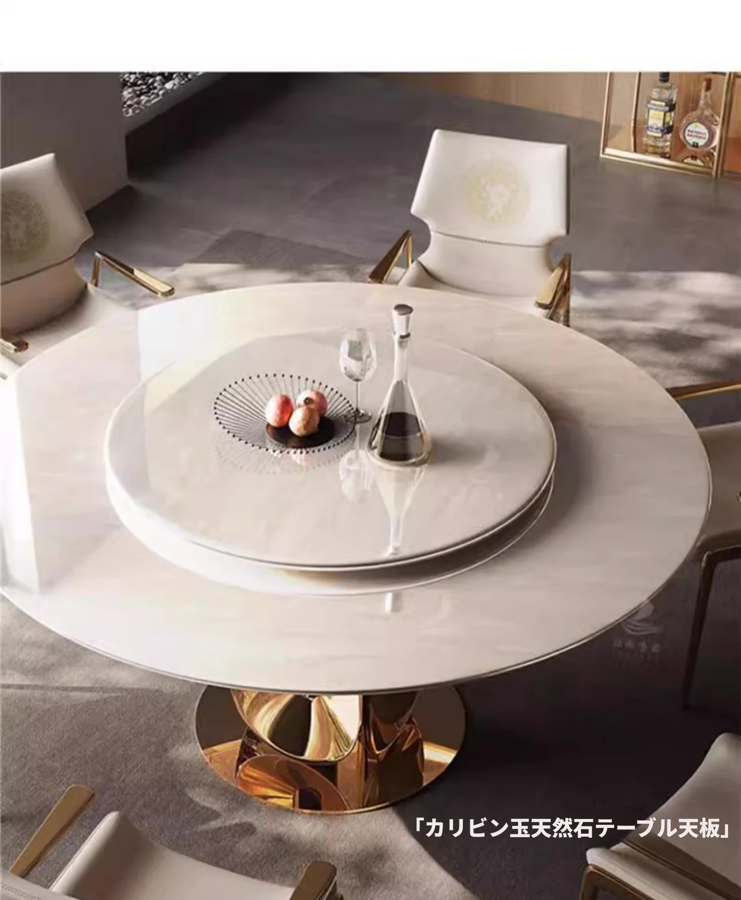 テーブル/1.35M/カリアイスストーン/シャンパンゴールド/70cmターンテーブル付き