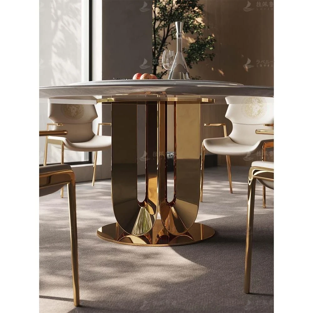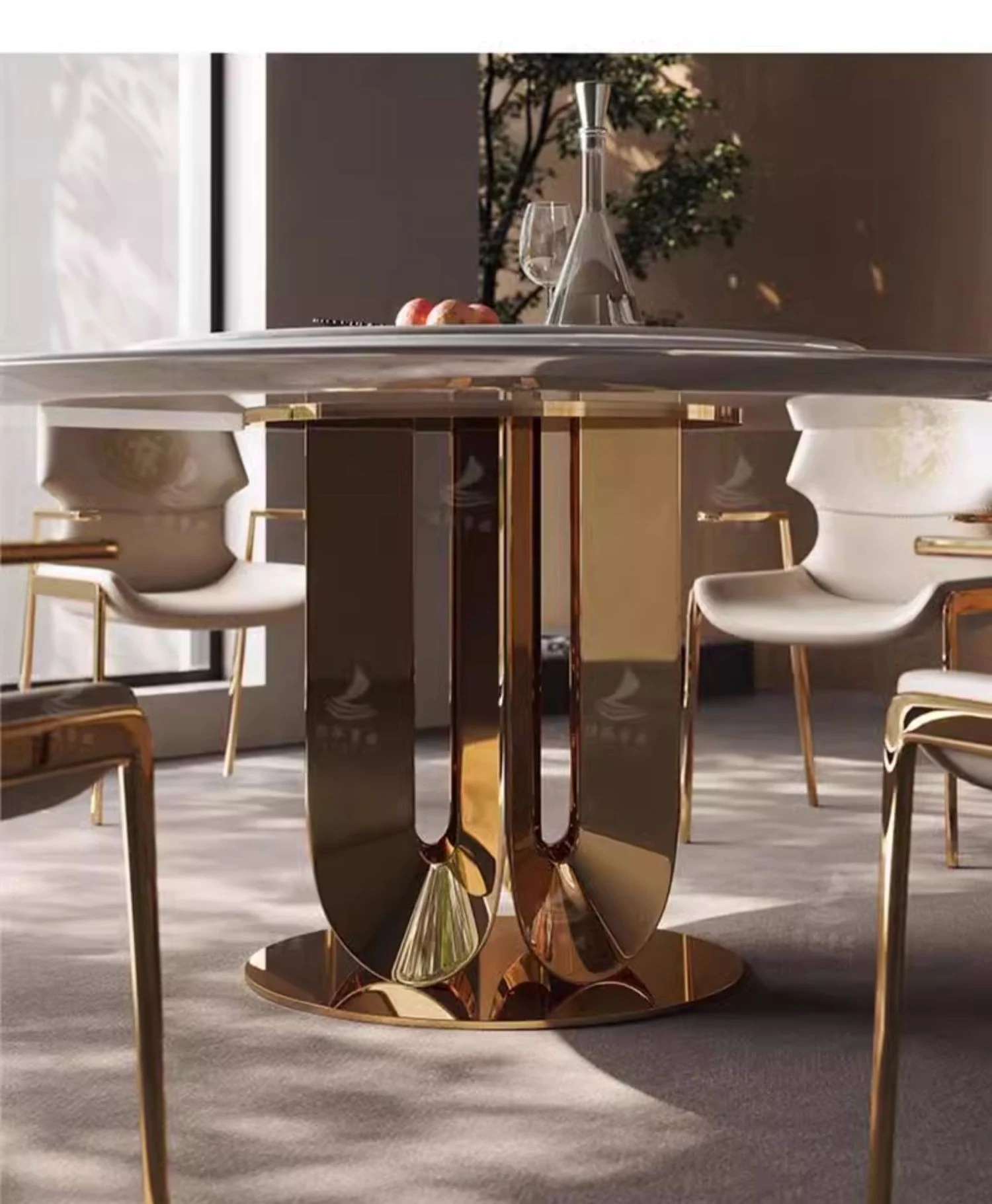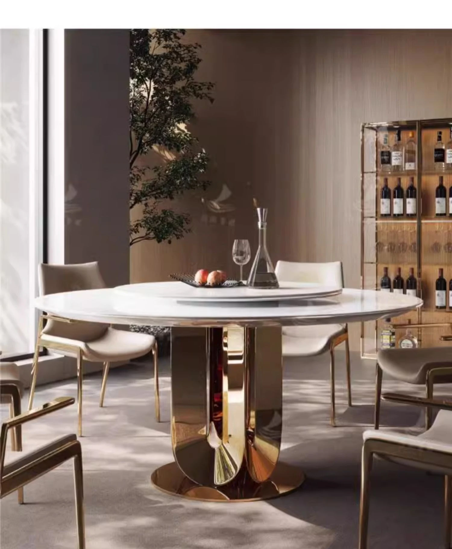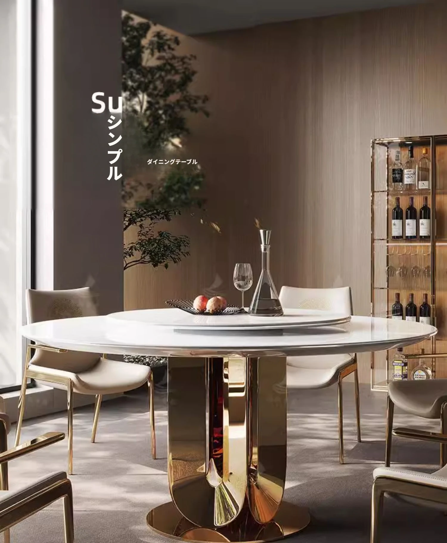 テーブル/1.35M/カリアイスストーン/シャンパンゴールド/70cmターンテーブル付き