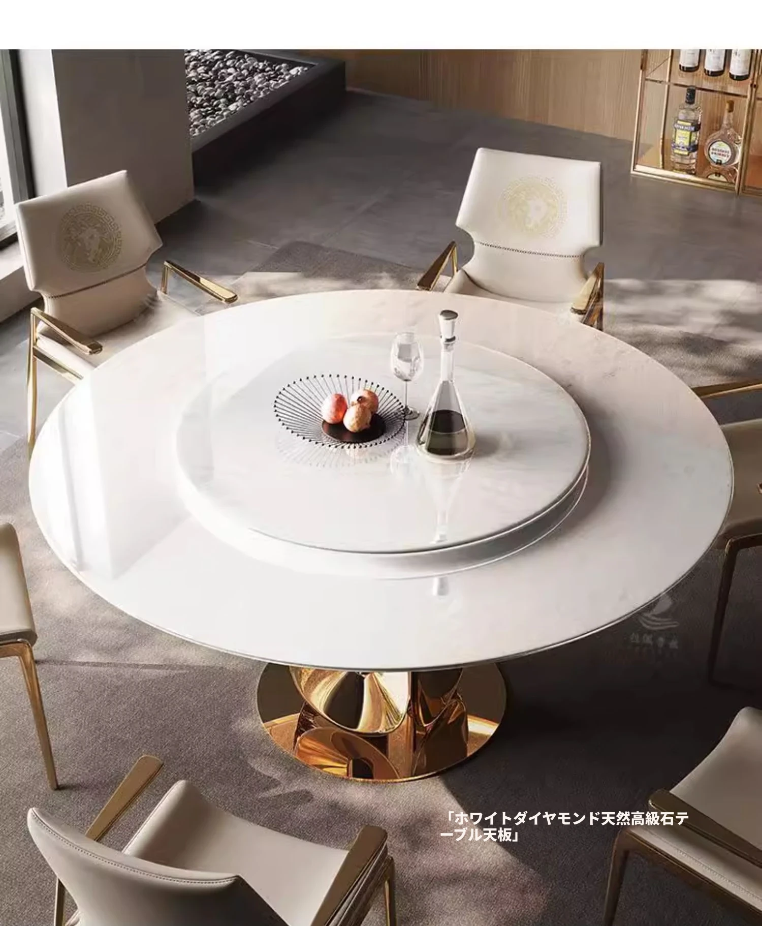 テーブル/1.35M/ホワイトダイヤモンド/シャンパンゴールド/70cmターンテーブル付き