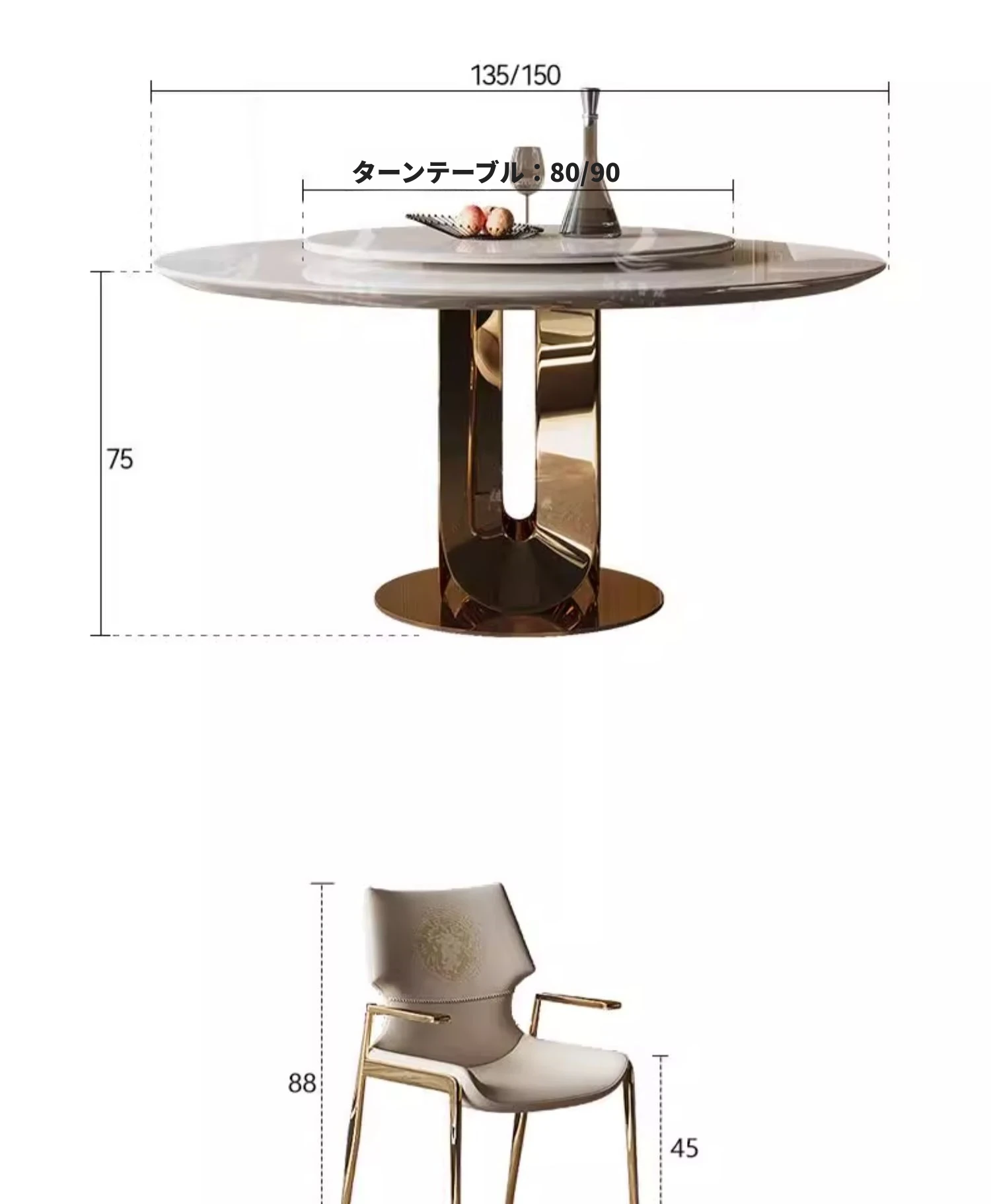 テーブル/1.5M/カリアイスストーン/シャンパンゴールド/90cmターンテーブル付き