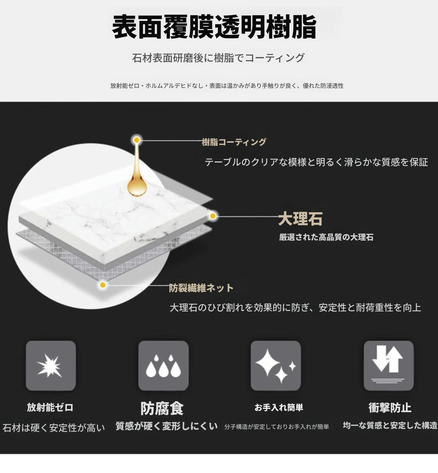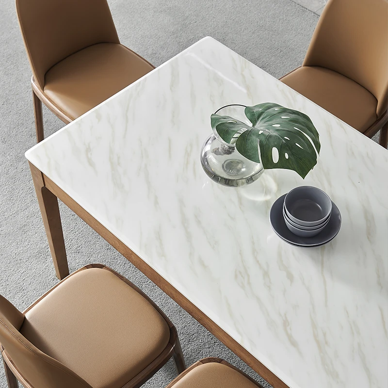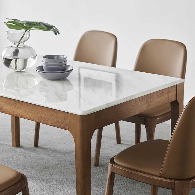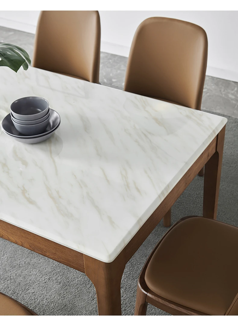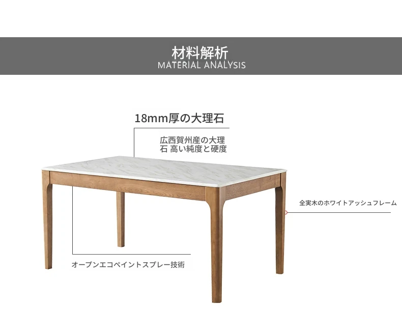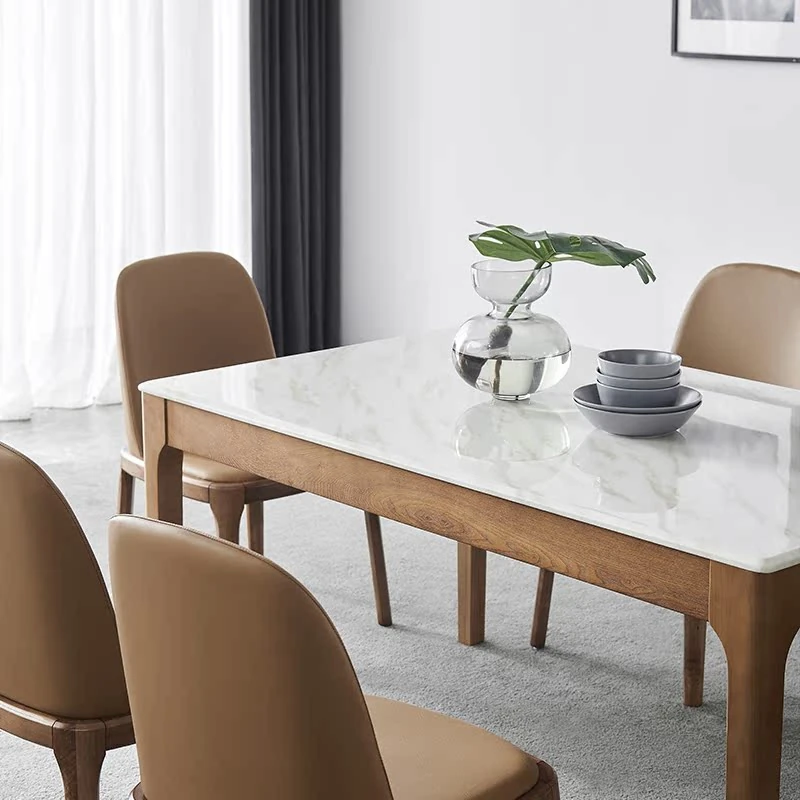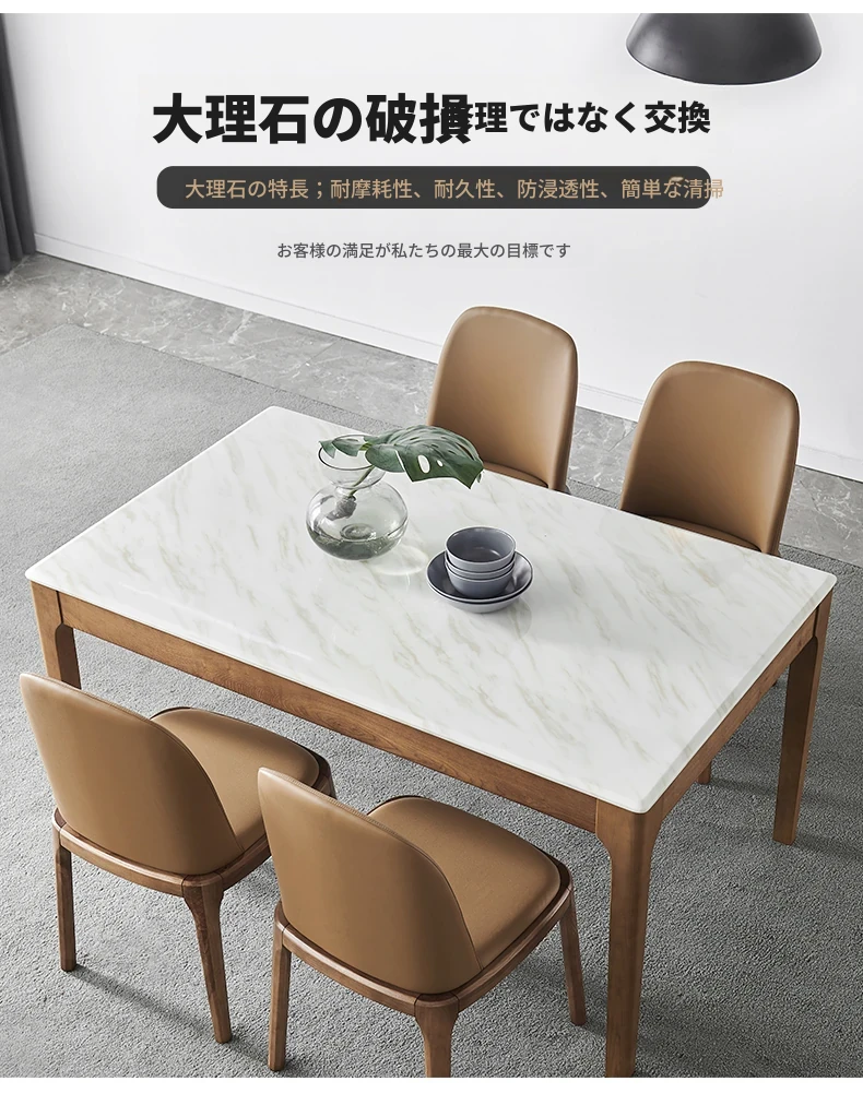 大理石ホワイトウッドダイニングテーブル【1.4*0.8*0.75メートル】