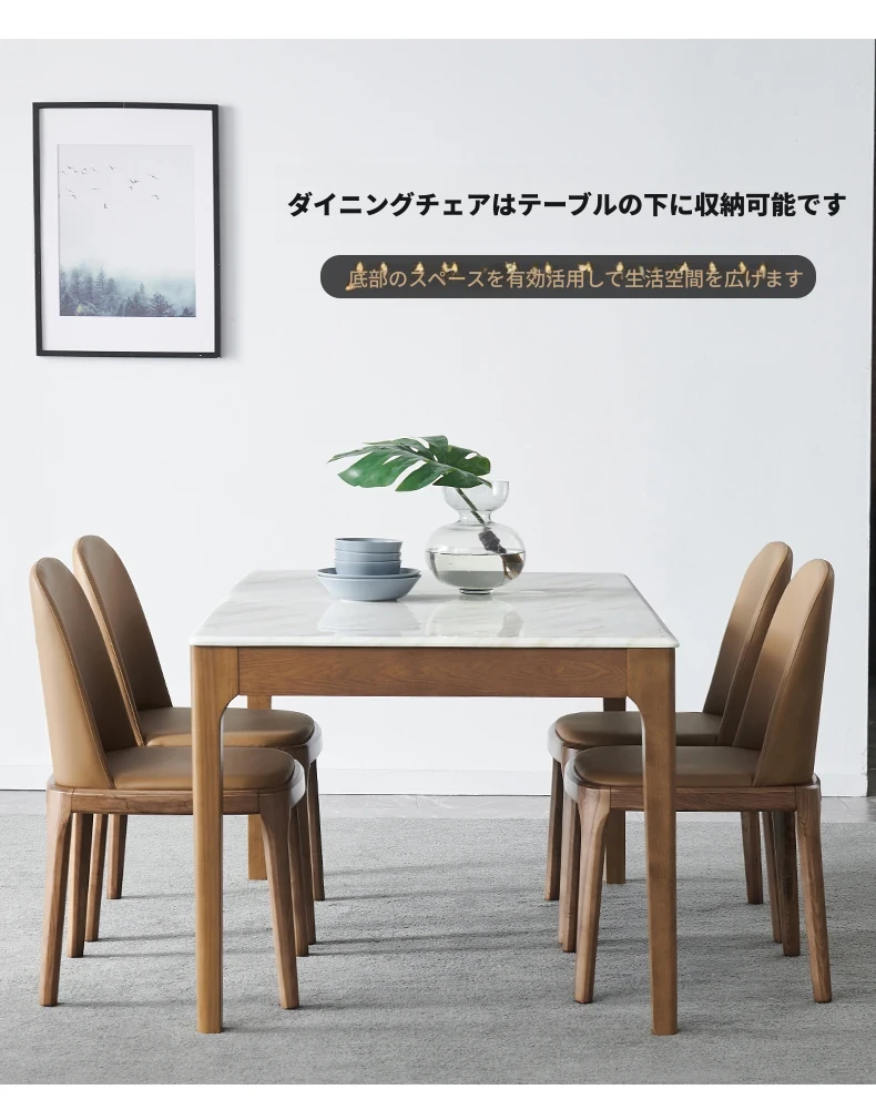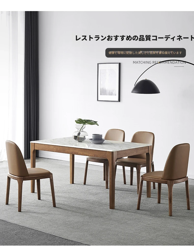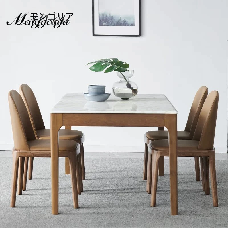 モンゴリア大理石ダイニングテーブルチェアセット - シンプルでスタイリッシュな小型長方形テーブル、家庭用の高級天然石と木材の組み合わせで、食卓を華やかに演出!