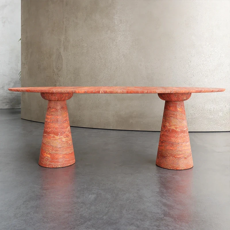 新作!ラグジュアリーな大理石ダイニングテーブル - 天然の洞石デザイン、クリエイティブで高級感溢れる別荘スタイルの食卓。おしゃれで洗練された空間を演出します!