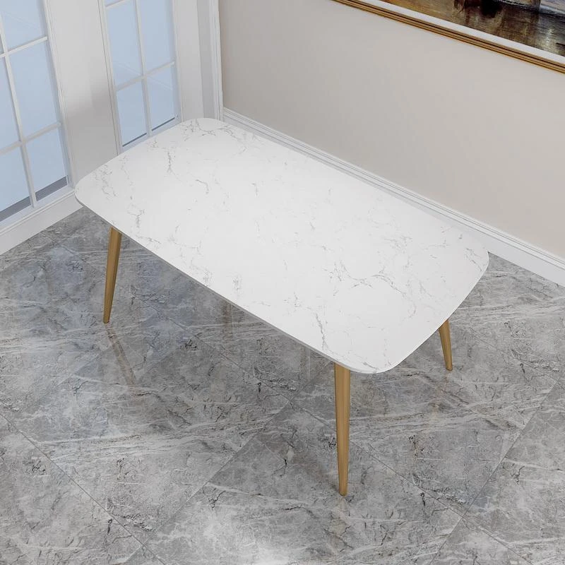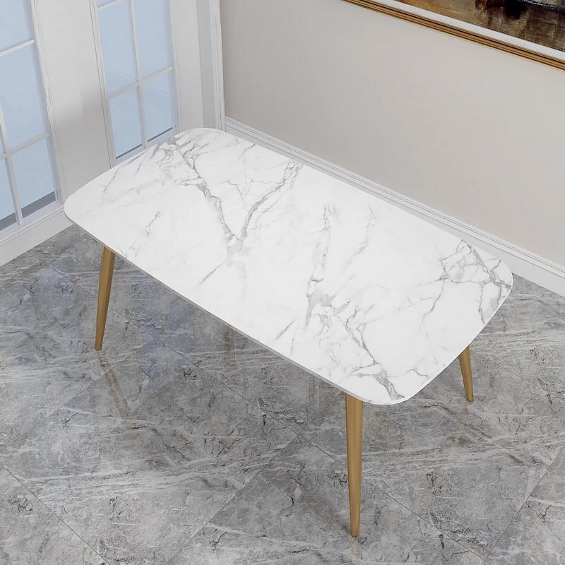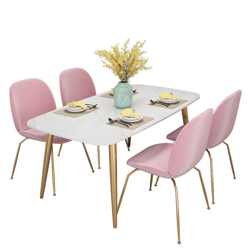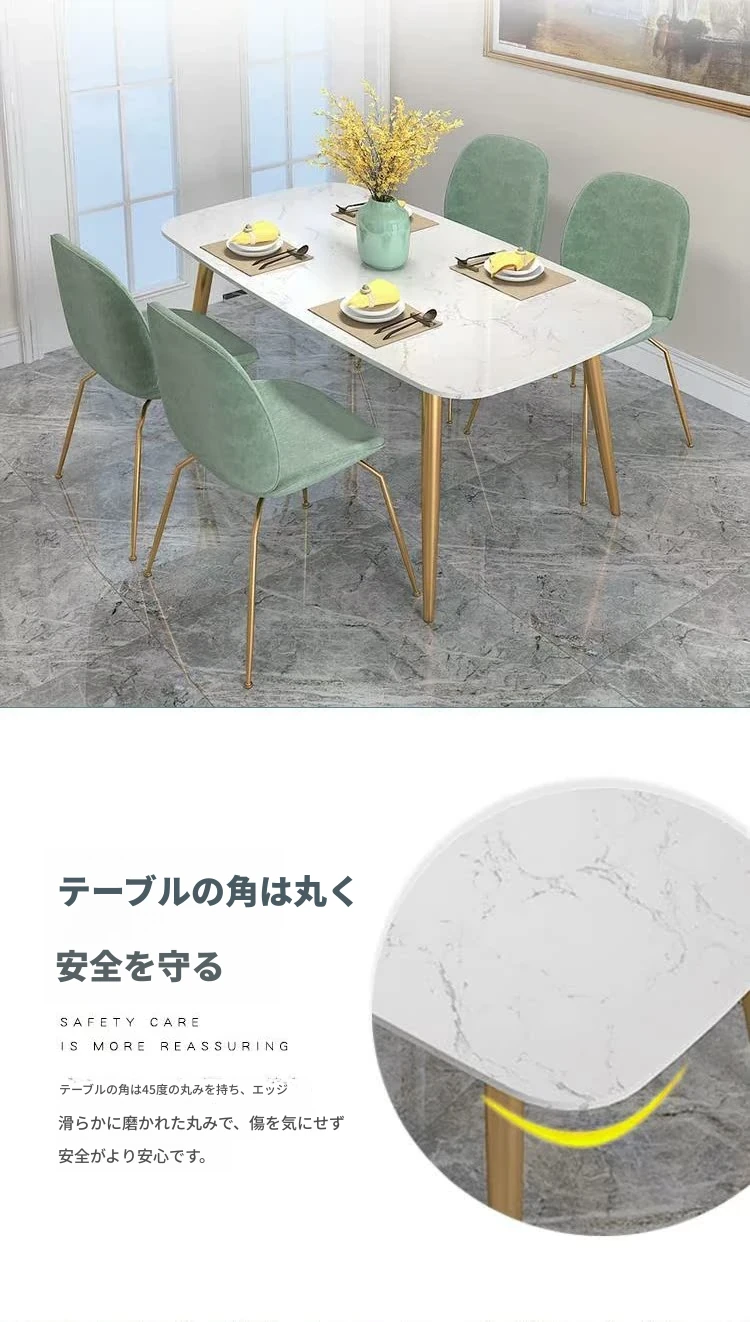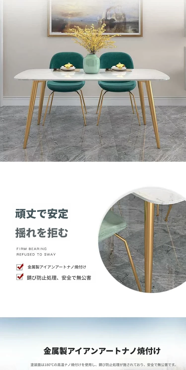 北欧風のインスタ映えデザイン!電鍍ゴールド仕上げの軽奢大理石ダイニングテーブルセット。シンプルでスタイリッシュ、小型住宅に最適な家庭用食卓。おしゃれな食空間を演出!