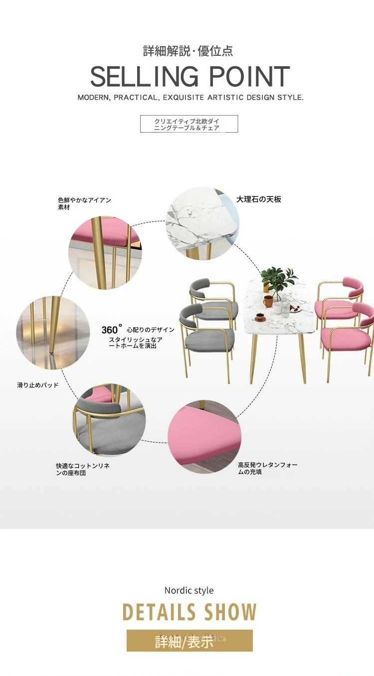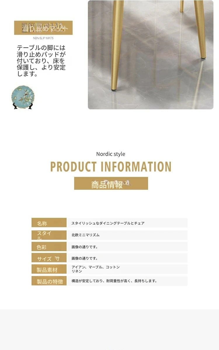 北欧風インスタ映え大理石ダイニングテーブル&チェアセット!シンプルでモダン、小さな部屋にもぴったりな長方形テーブル。家族や友人との楽しい食事を演出します!