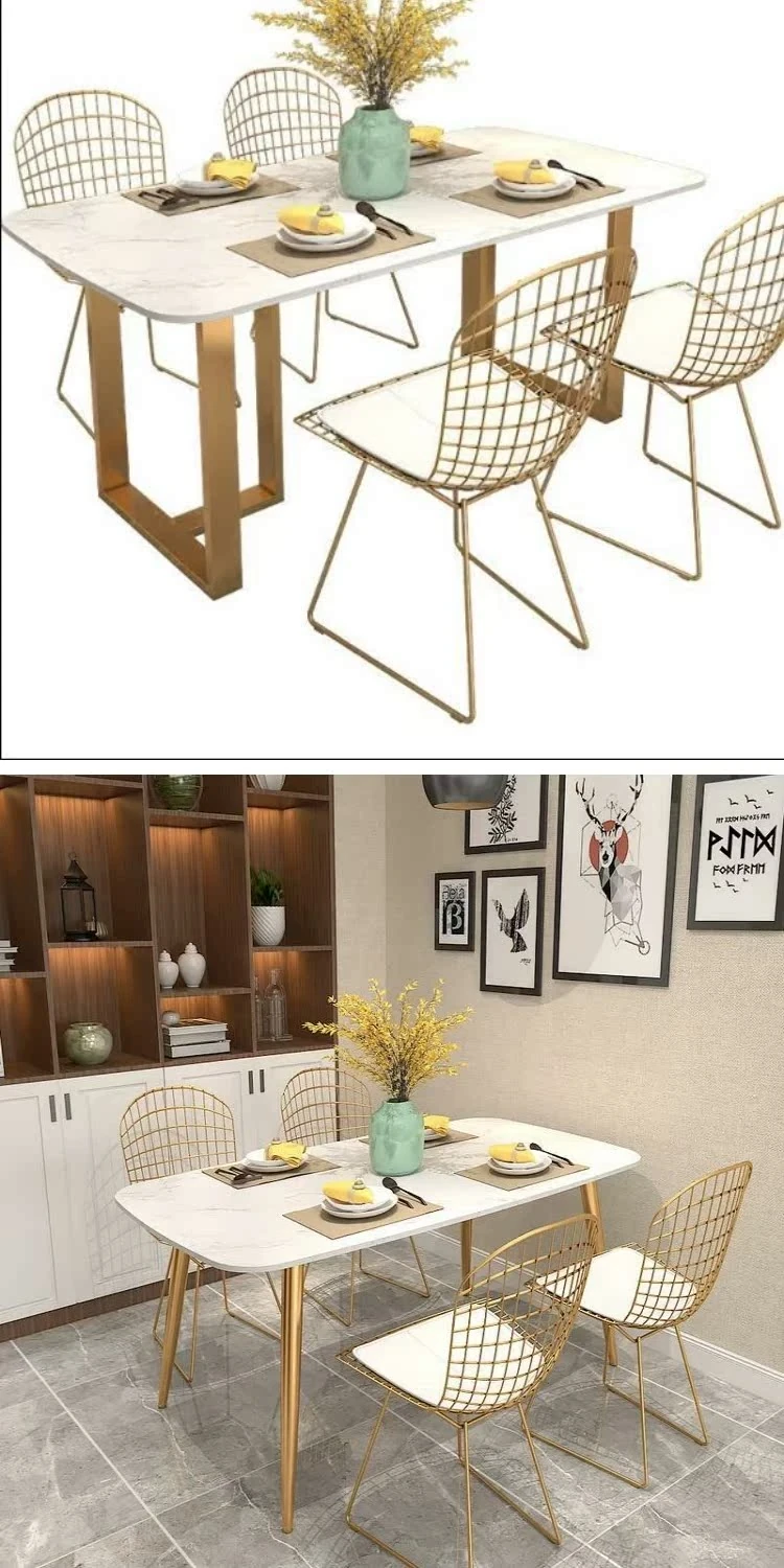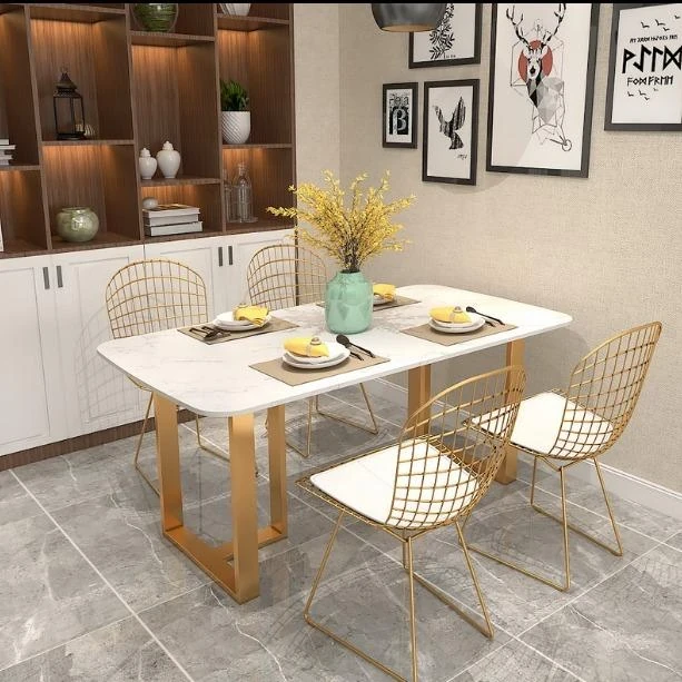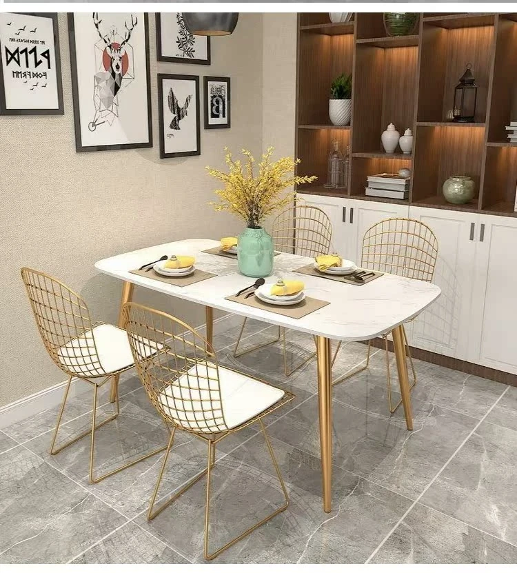 インスタ映え!北欧スタイル大理石ダイニングテーブルセット - モダンでシンプルな長方形デザイン、小スペース対応の家庭用テーブル。おしゃれな食卓で特別なひとときを!