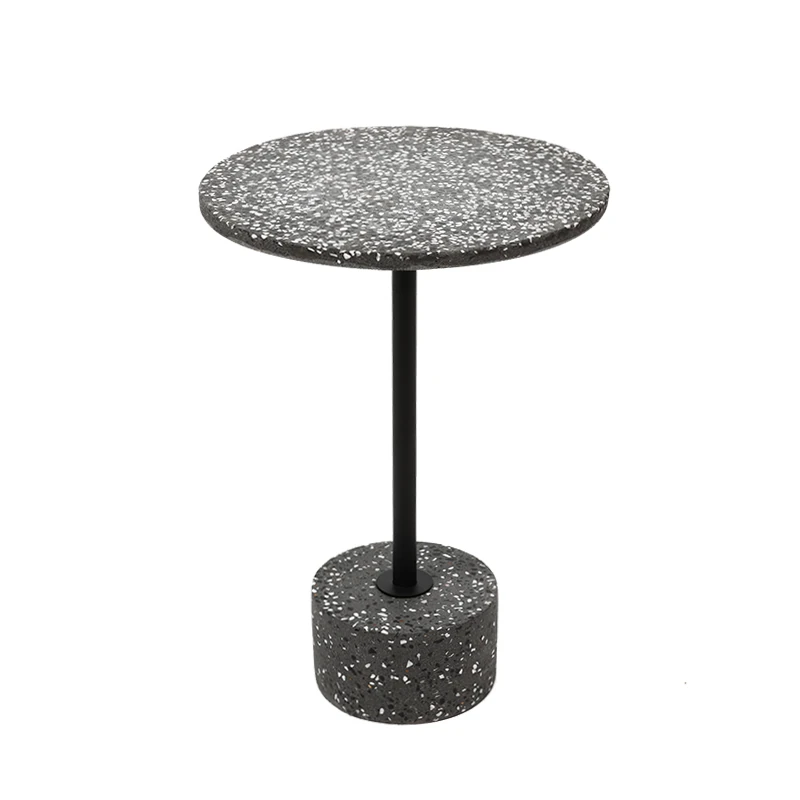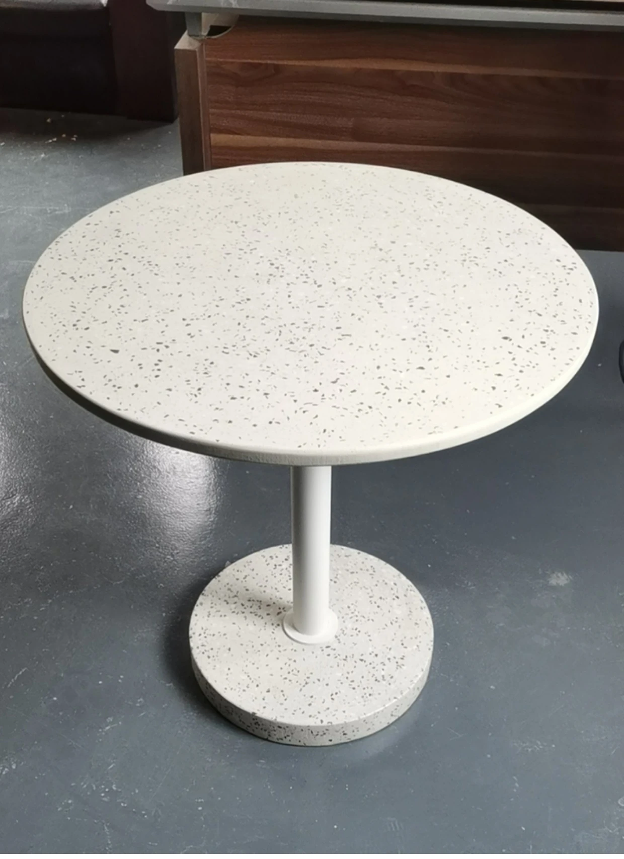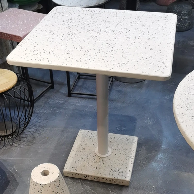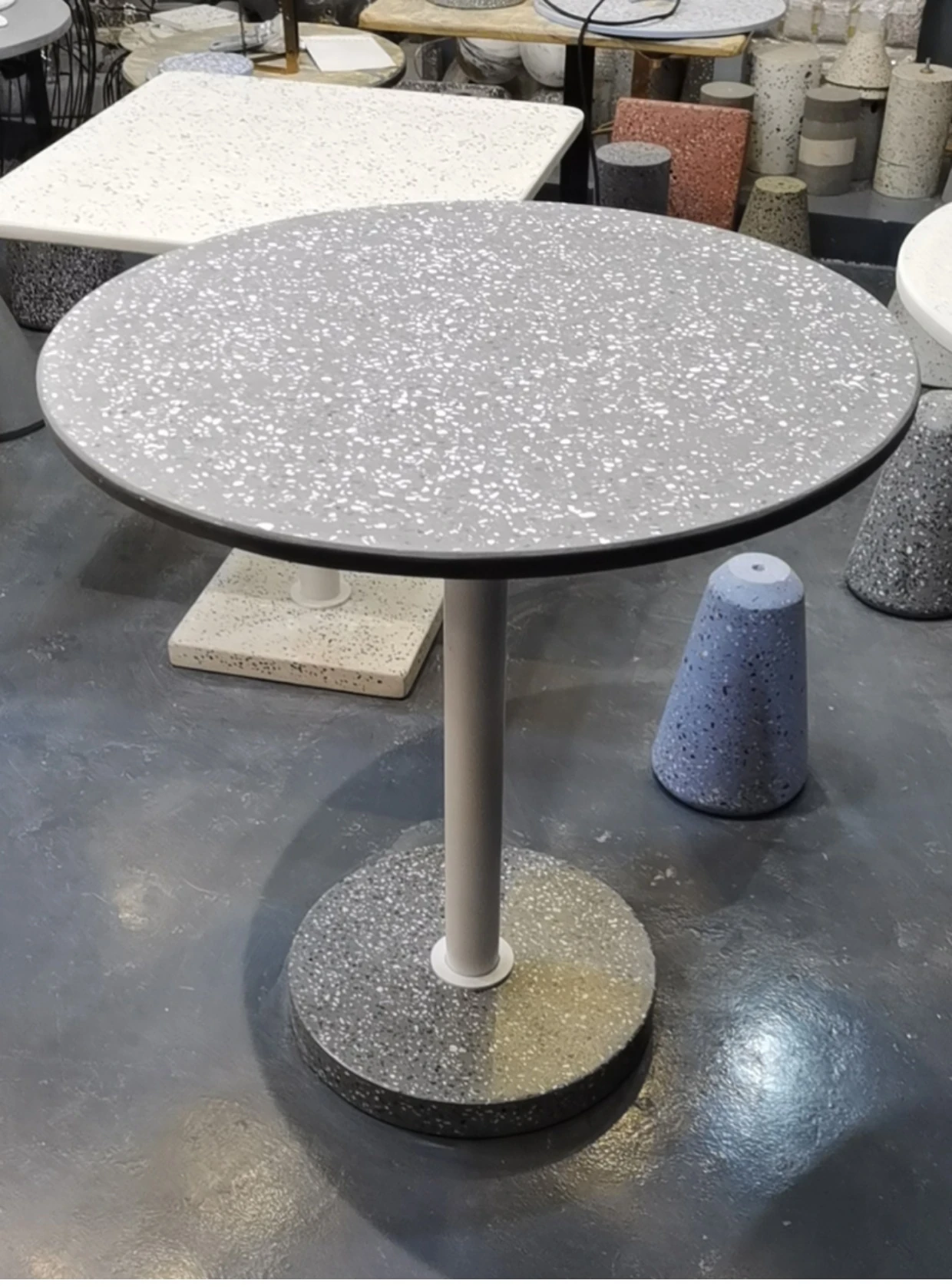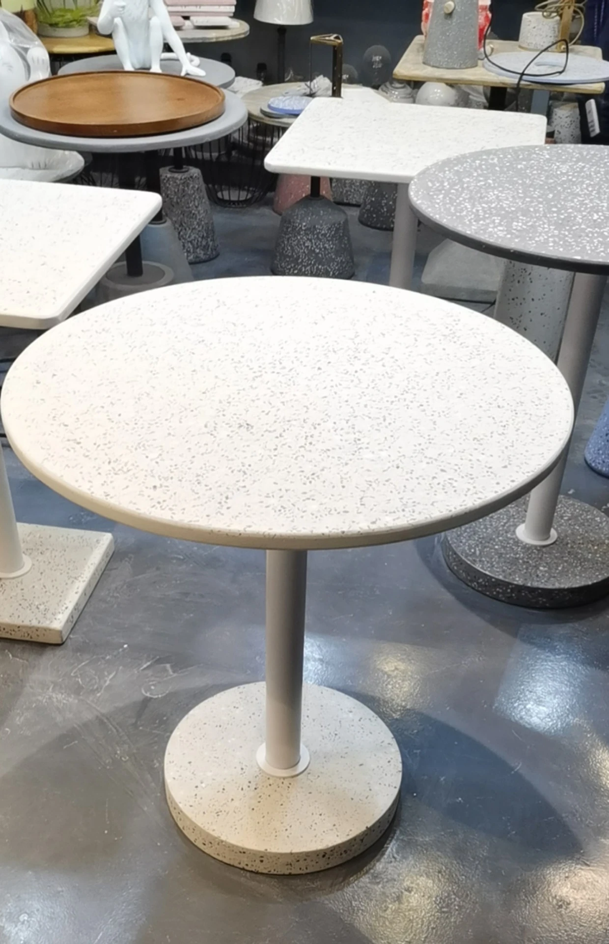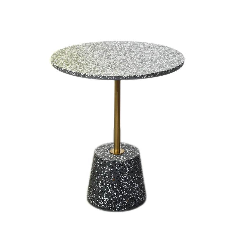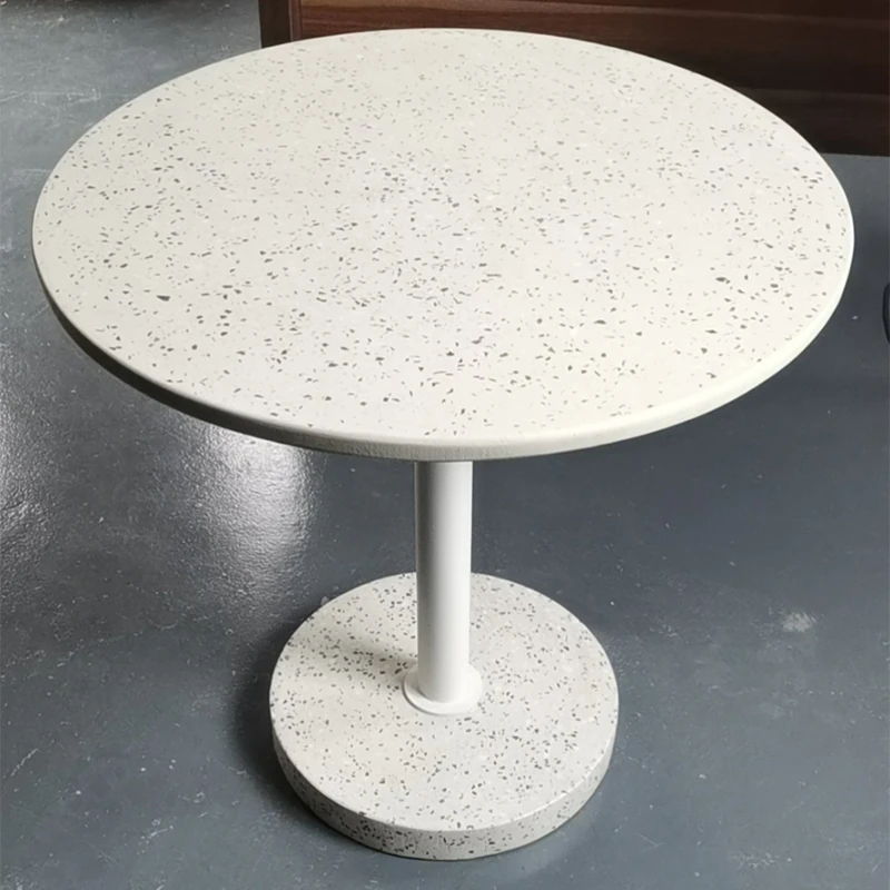 水磨石デザインの北欧スタイルアウトドアテーブル - シンプルでスタイリッシュな四角形デザイン、スイーツショップやカフェに最適な小さな円形テーブル。和の美を感じる侘寂風コーヒーテーブル。