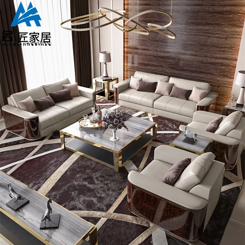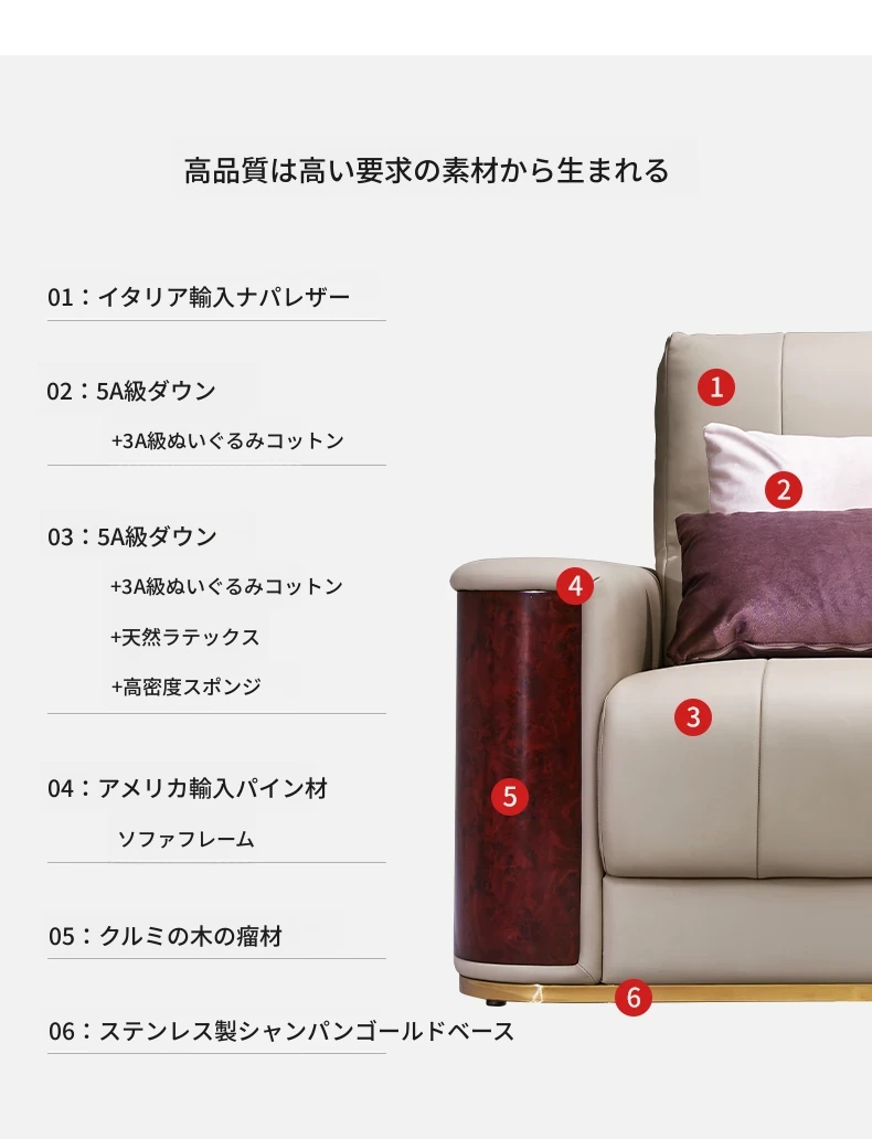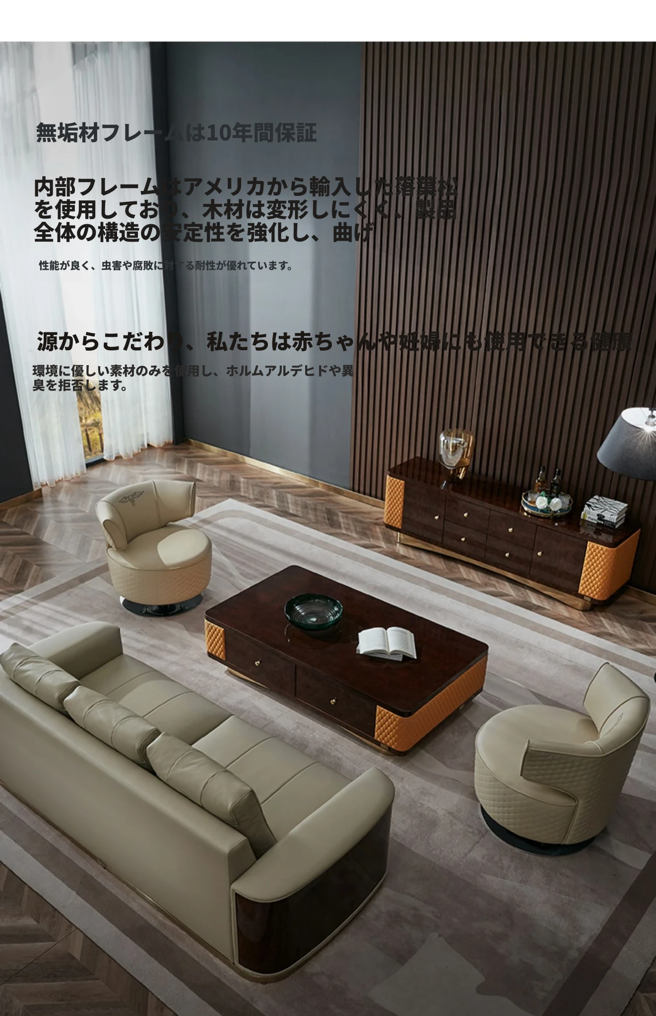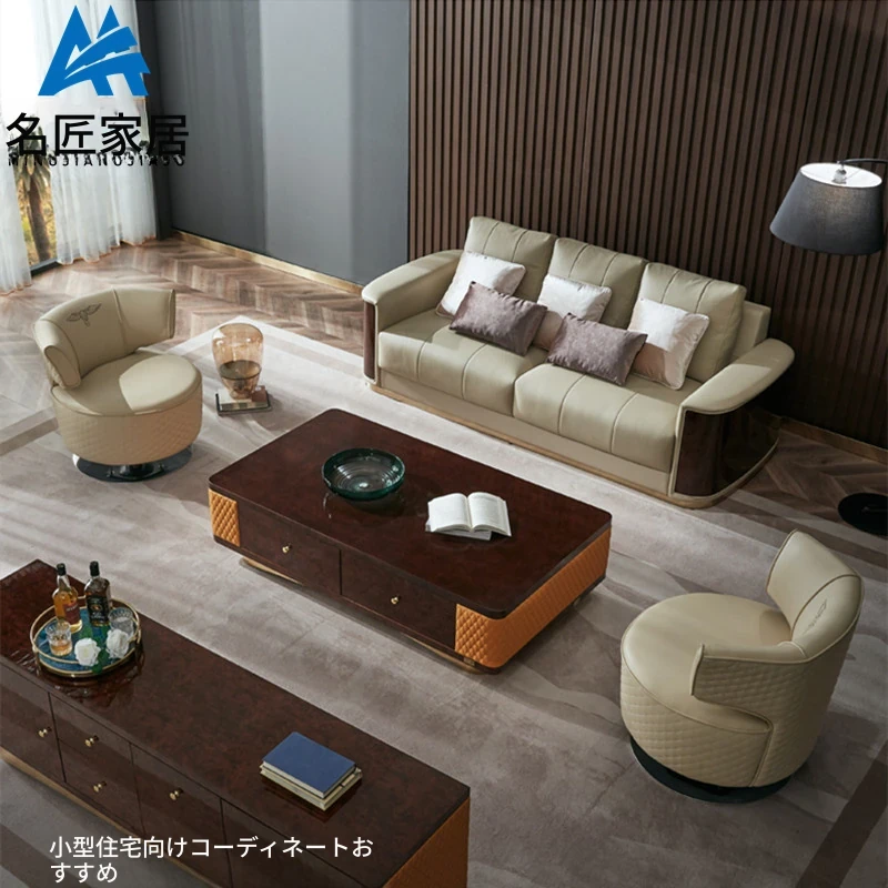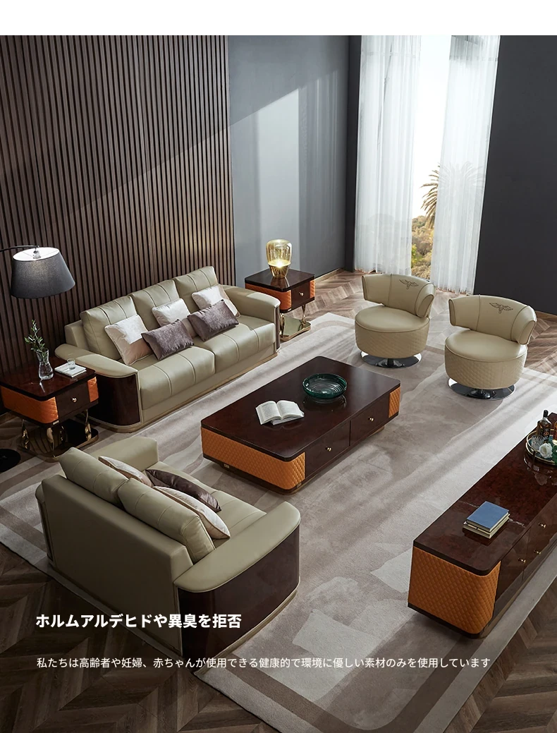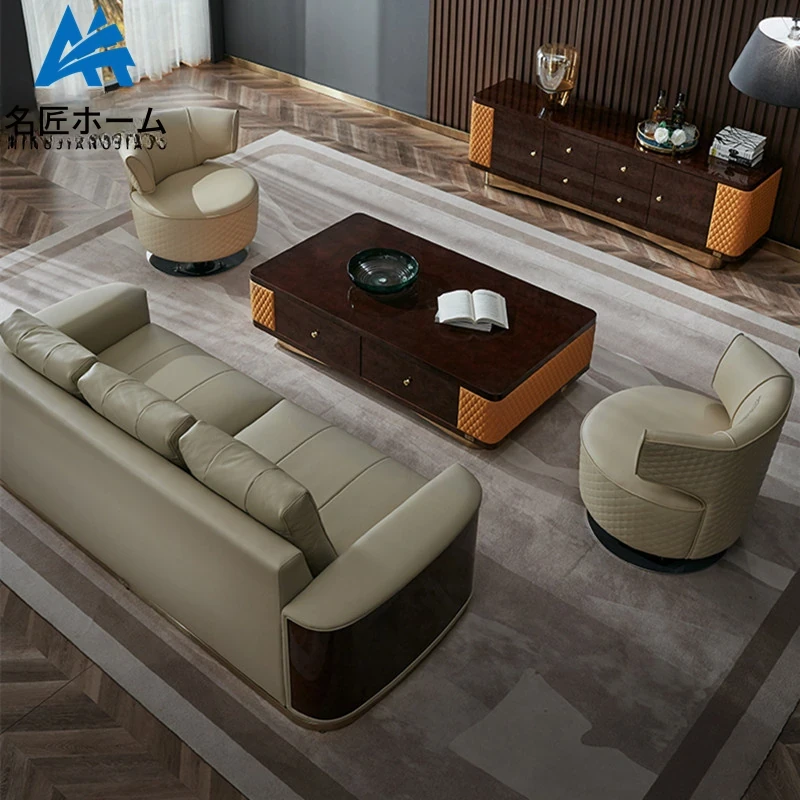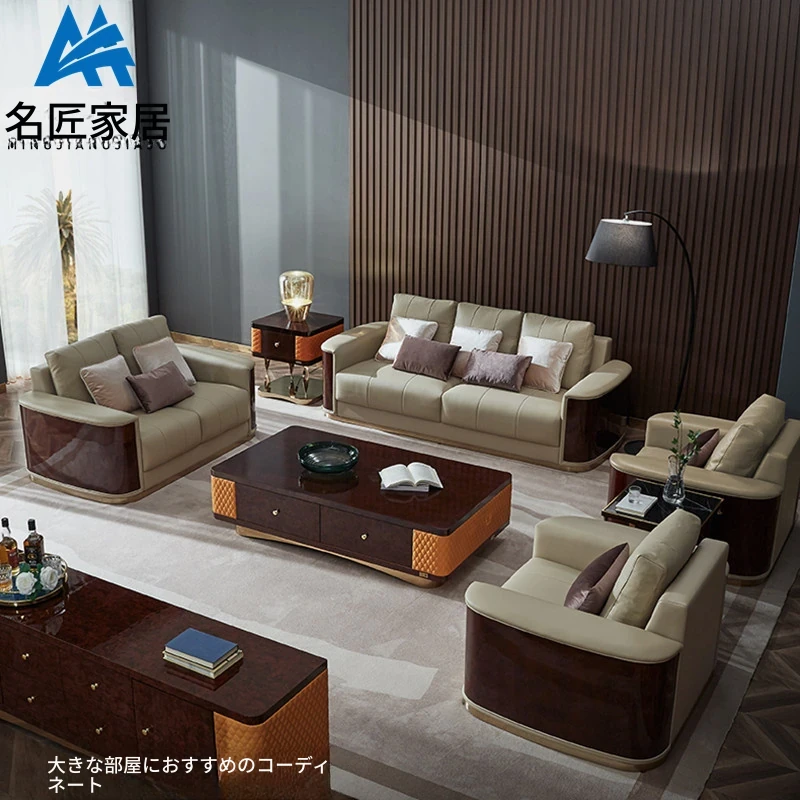ポストモダン・ハイエンド本革ソファ|豪華イタリア別荘スタイルの大邸宅向け|イタリアン&香港風リビングに最適な無垢材家具【贅沢な癒しの空間を演出】