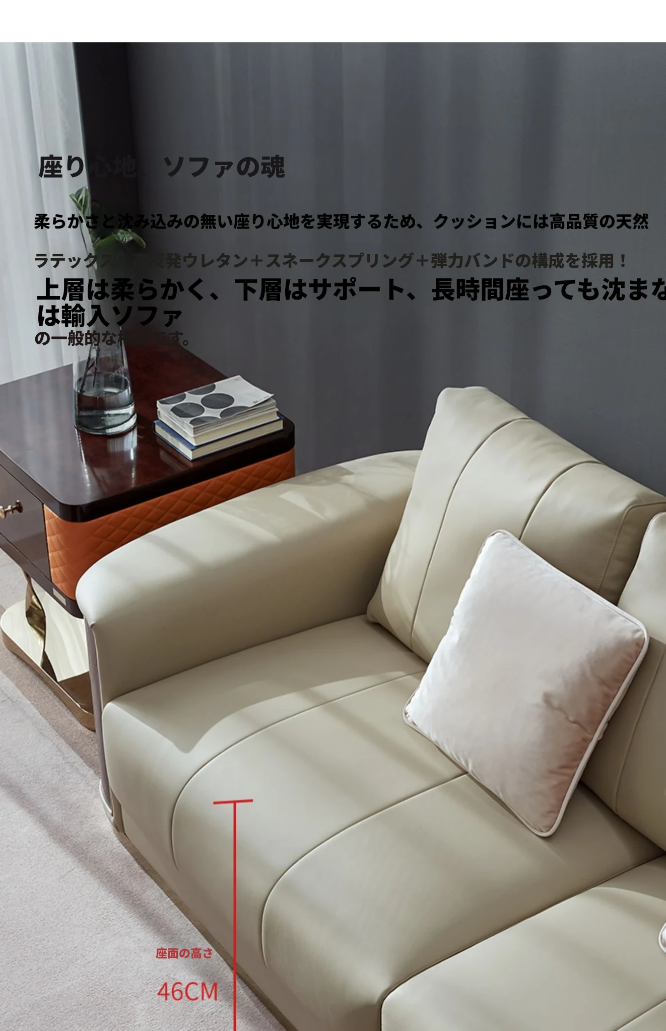 軽やかなラグジュアリー!輸入本革使用のポケットコイルソファ、イタリアンスタイルの3人掛け。広々としたヴィラや大規模なリビングにぴったりの現代的なベントレーソファ。上質な快適さを手に入れましょう!