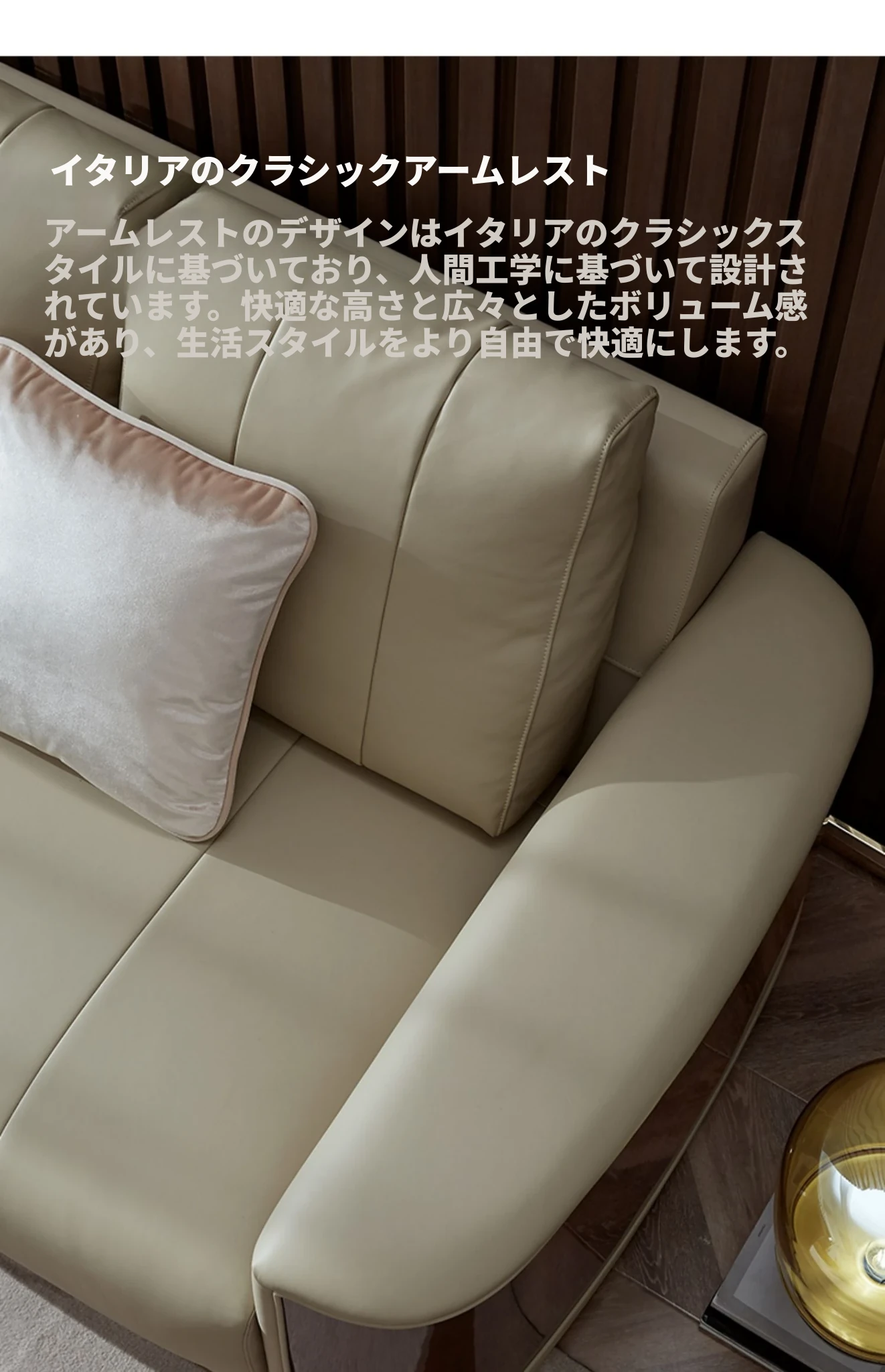 イタリア直輸入の本革三人掛けソファ「Antohn」—シンプルで洗練されたデザイン、軽やかな贅沢感を楽しむ新作!