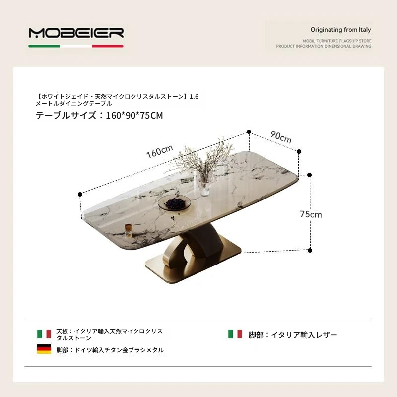 【ホワイトジェイド天然微晶石】1.6メートルダイニングテーブル