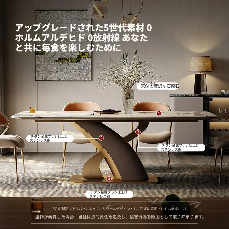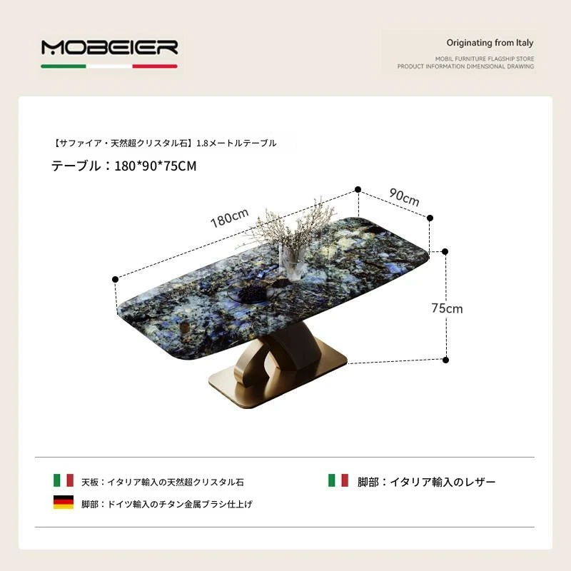 【サファイア天然超晶石】1.8メートルダイニングテーブル