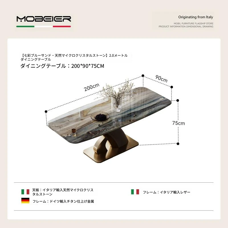 【カラフルブルーゴールド砂天然微晶石】2.0メートルダイニングテーブル