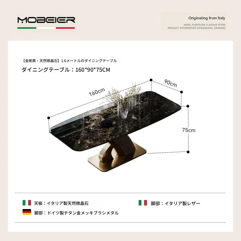 【ブラックダイヤモンド天然微晶石】1.6メートルダイニングテーブル