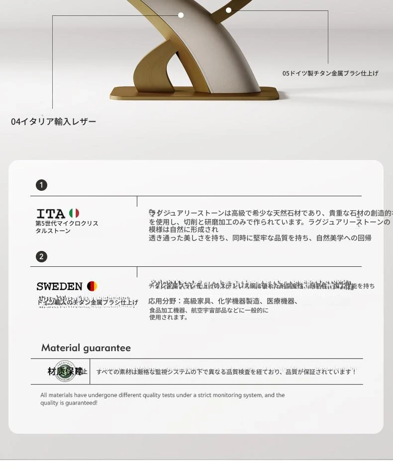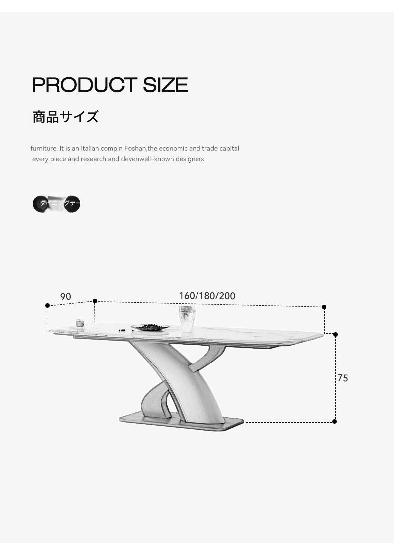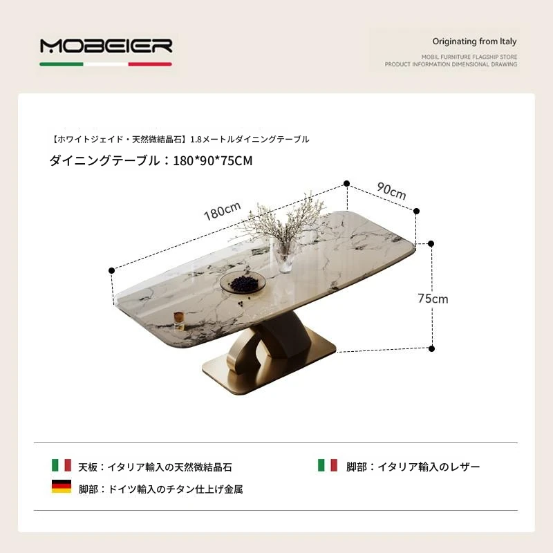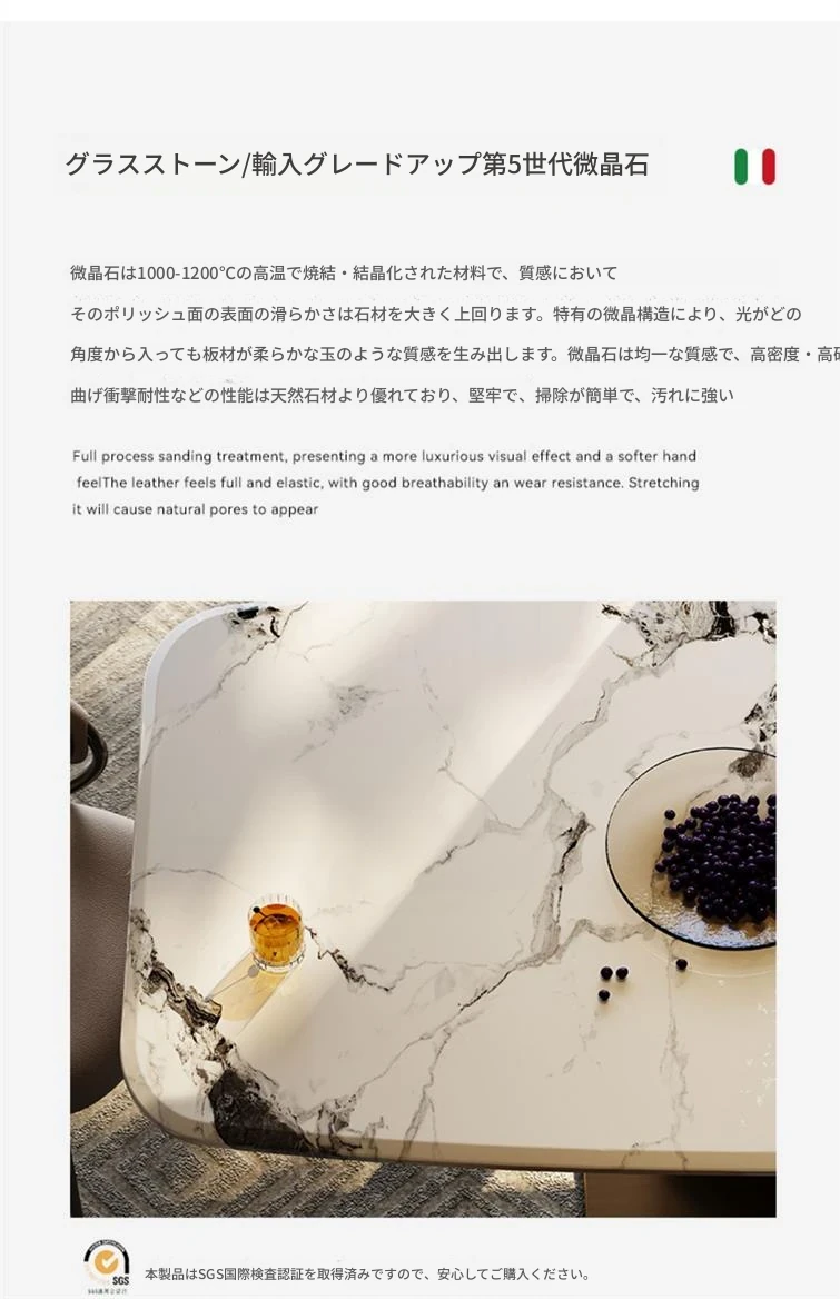 【ホワイトジェイド天然微晶石】1.8メートルダイニングテーブル