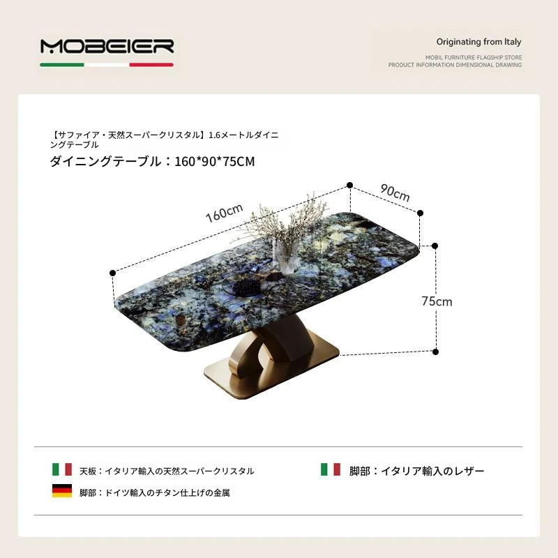 【サファイア天然超晶石】1.6メートルダイニングテーブル