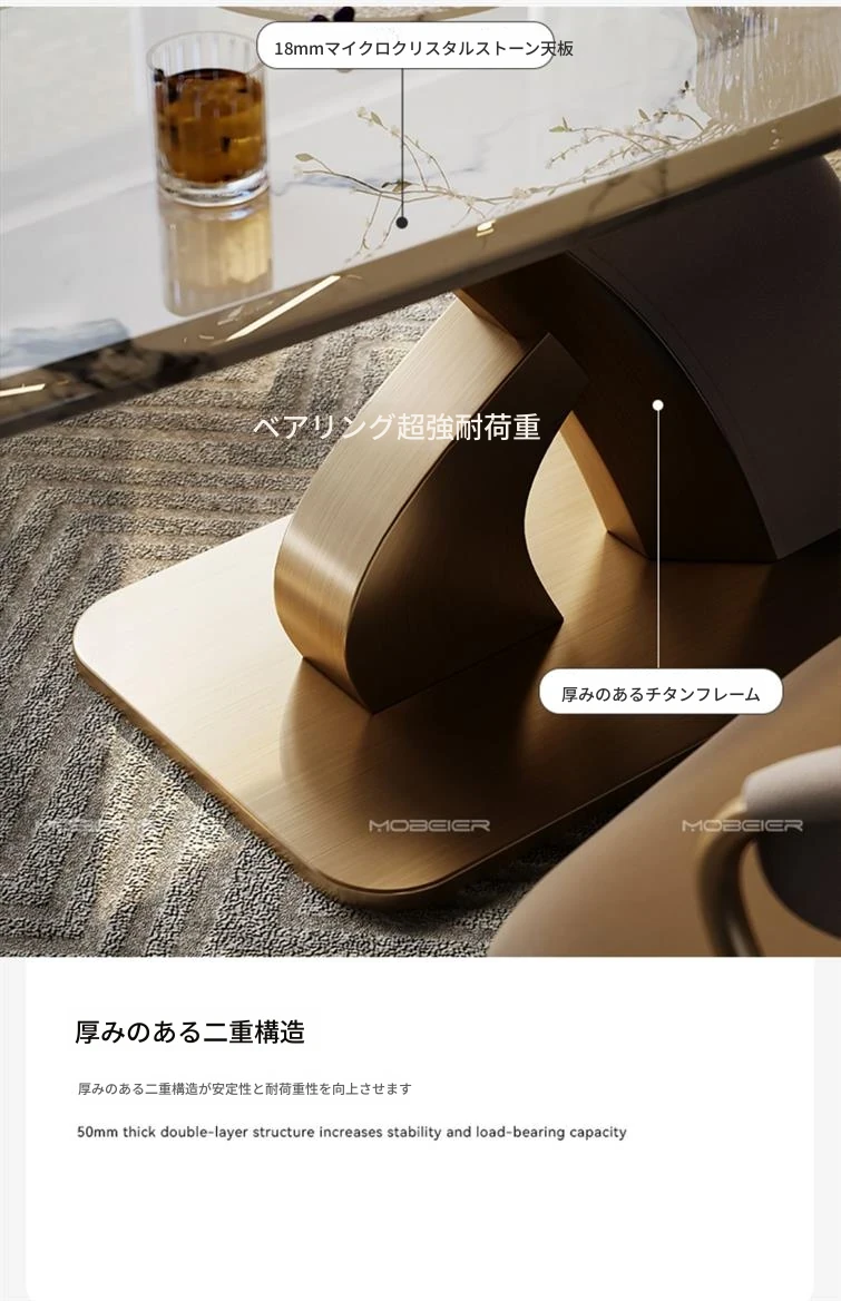 【カラフルブルーゴールド砂天然微晶石】1.8メートルダイニングテーブル