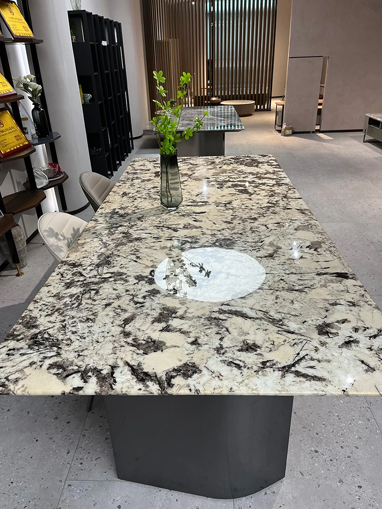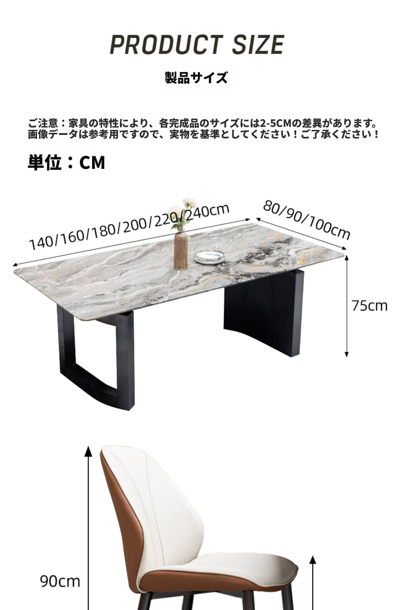 【天然大理石】2.4メートルダイニングテーブル+8脚の椅子