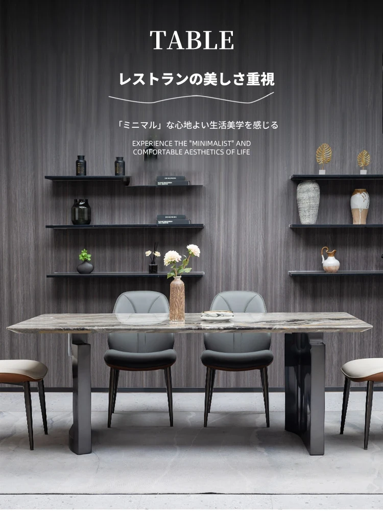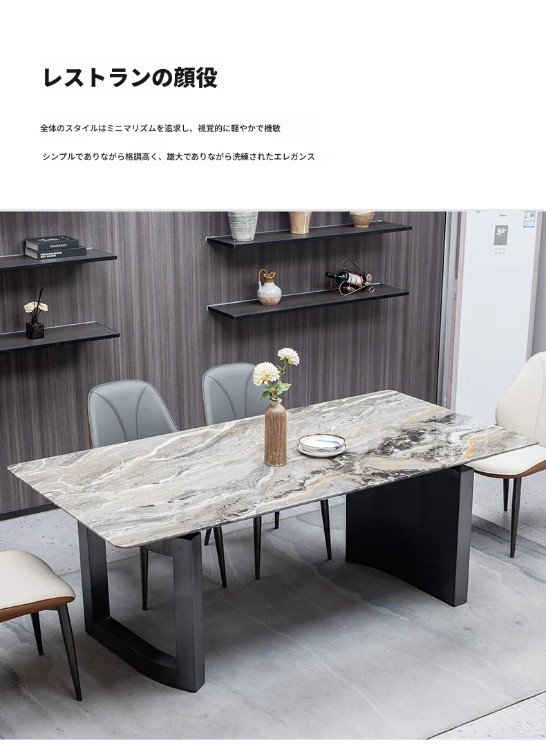 【天然大理石】2.0メートルダイニングテーブル+8脚の椅子