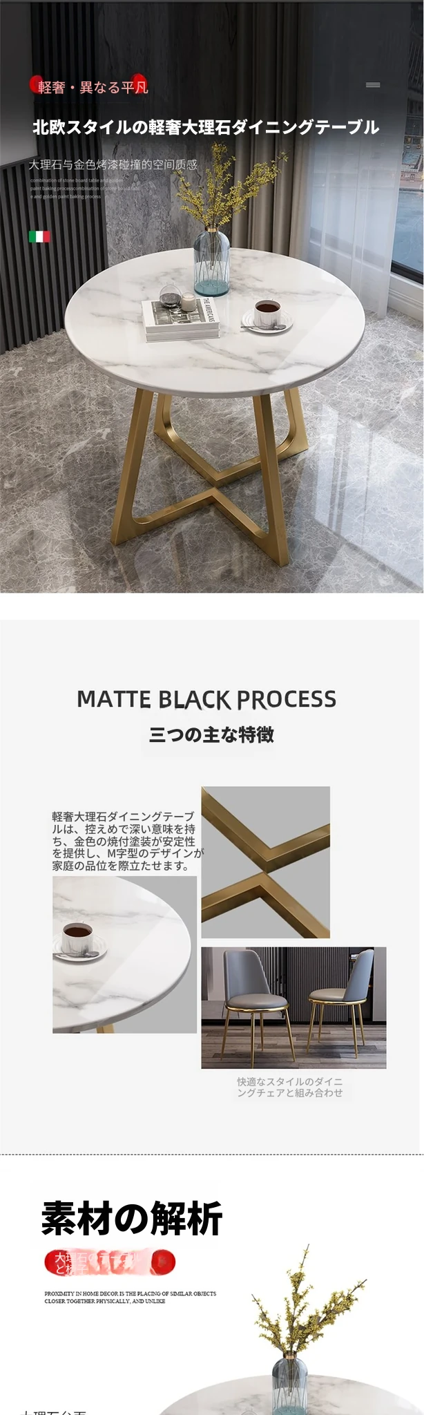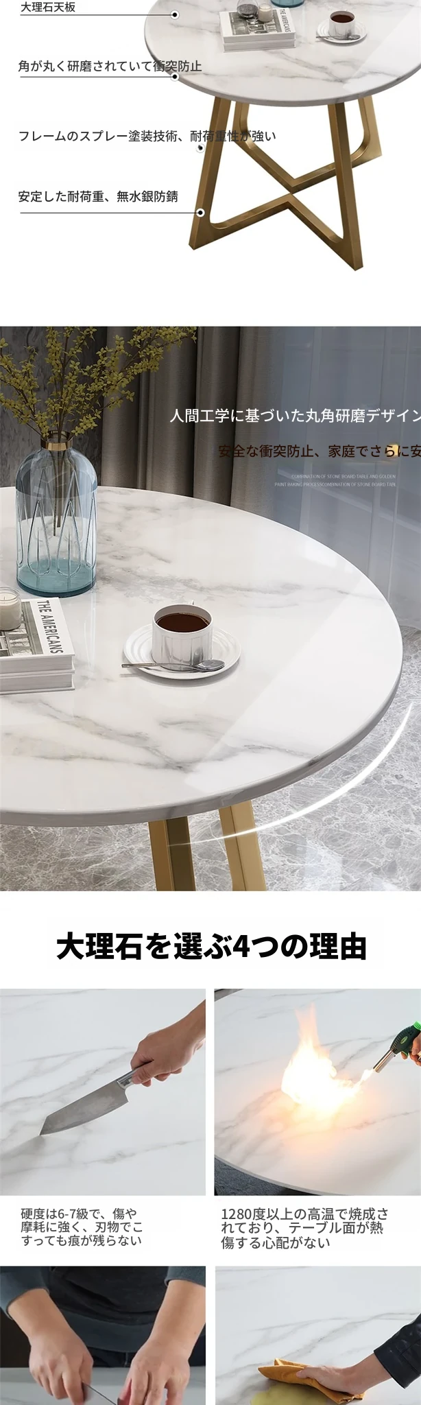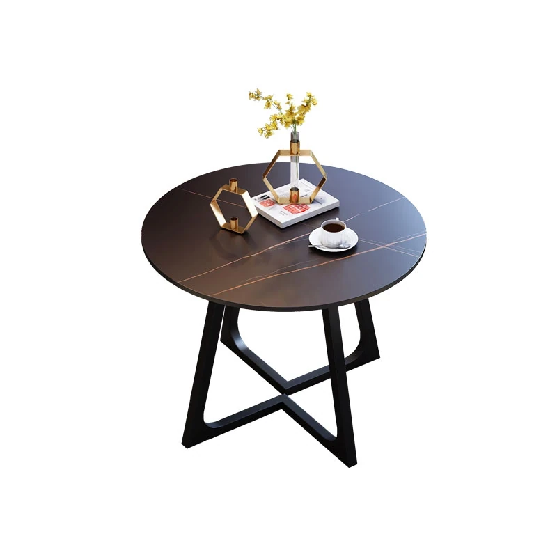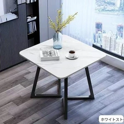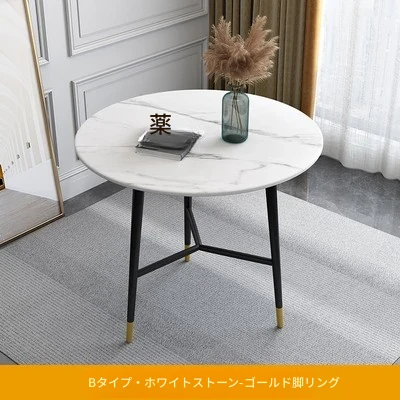 スタイリッシュな小型ラウンドテーブル - 高級岩板素材使用、リラックスした空間を演出する接待・談話用デスクセット!