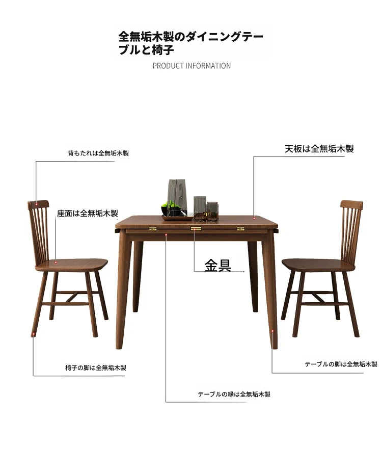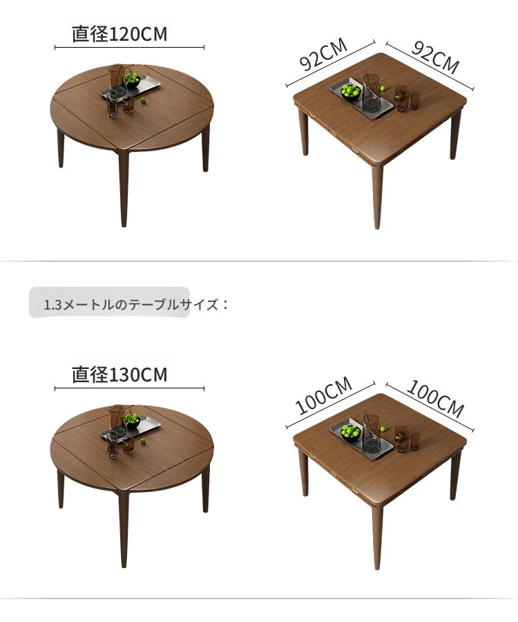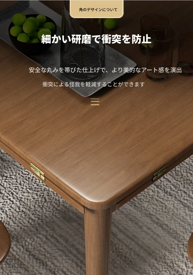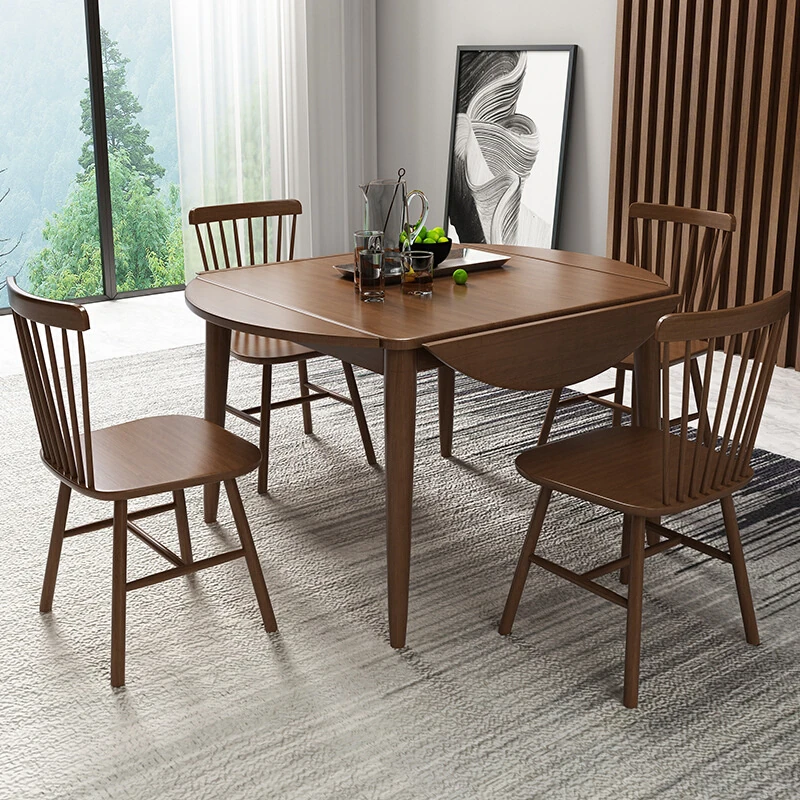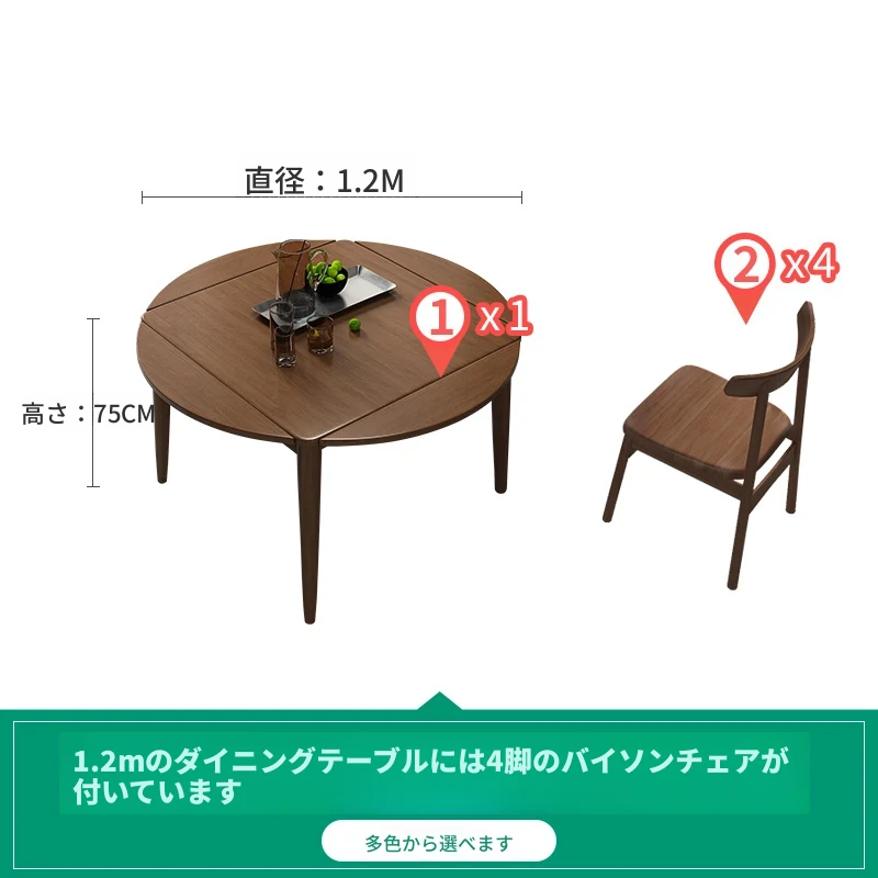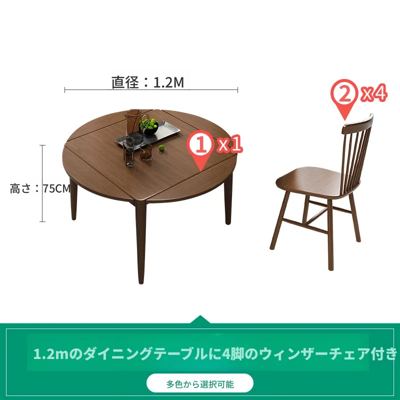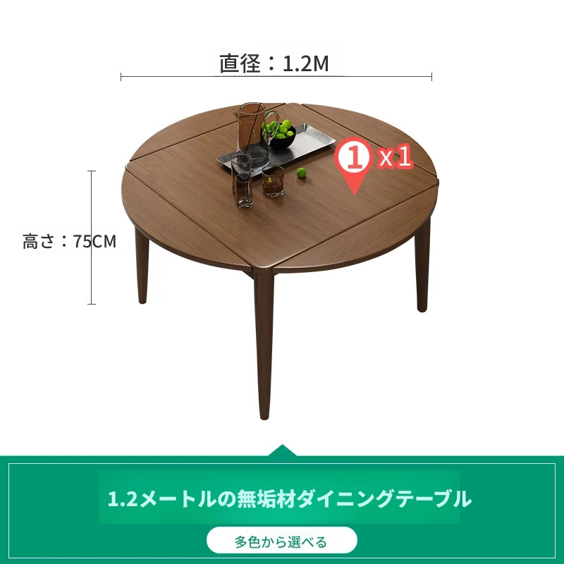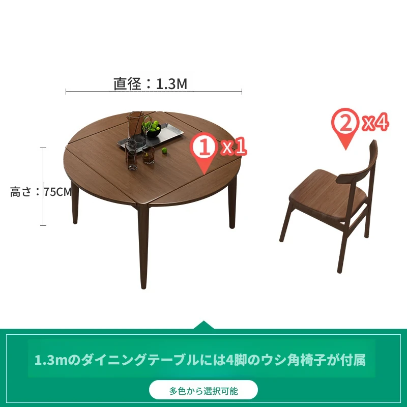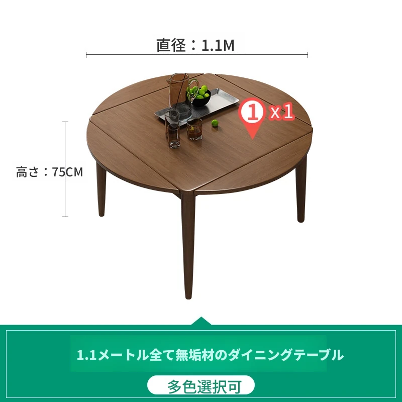 全実木折りたたみ式ダイニングテーブル!四角から丸に変身する多機能テーブル、小型住宅にもぴったりで、家族や友人との楽しい食事をサポートします。収納も簡単で、スペースを有効活用!