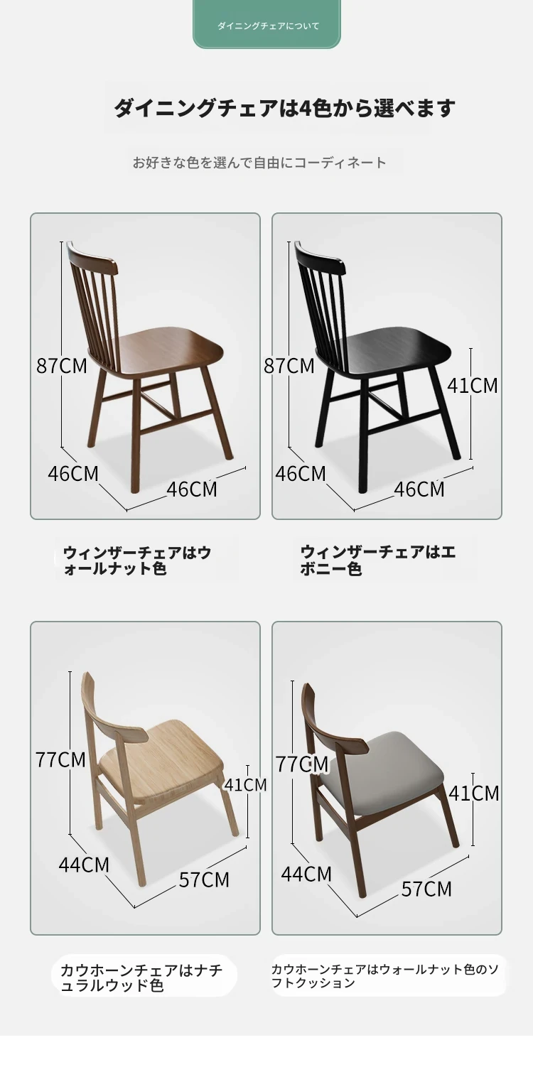 1.1mダイニングテーブルにウィンザー椅子4脚