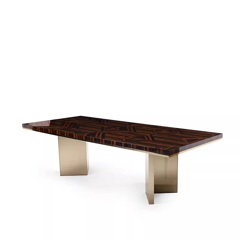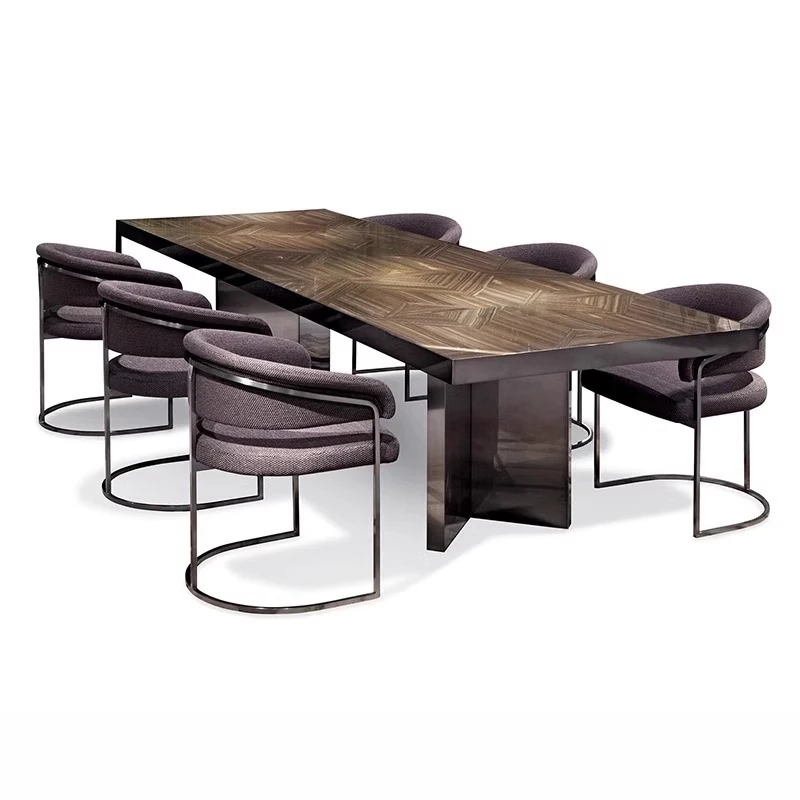 ヴィジョネール ラグジュアリー テンプテーション ギンズバーグ 木製ロングダイニングテーブル 天然大理石 会議テーブル - 高級感溢れるデザインで、特別な空間を演出します!