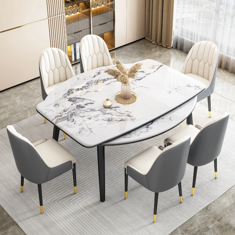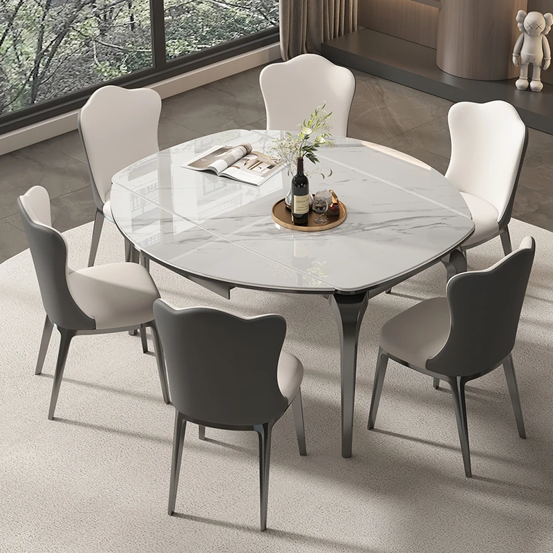 2024年新作!小型住宅向け天然ミクロクリスタルストーン伸縮型ラウンドテーブル、高級大理石ダイニングテーブル&チェアセットで、スペースを有効活用しながらスタイリッシュな食卓を演出!